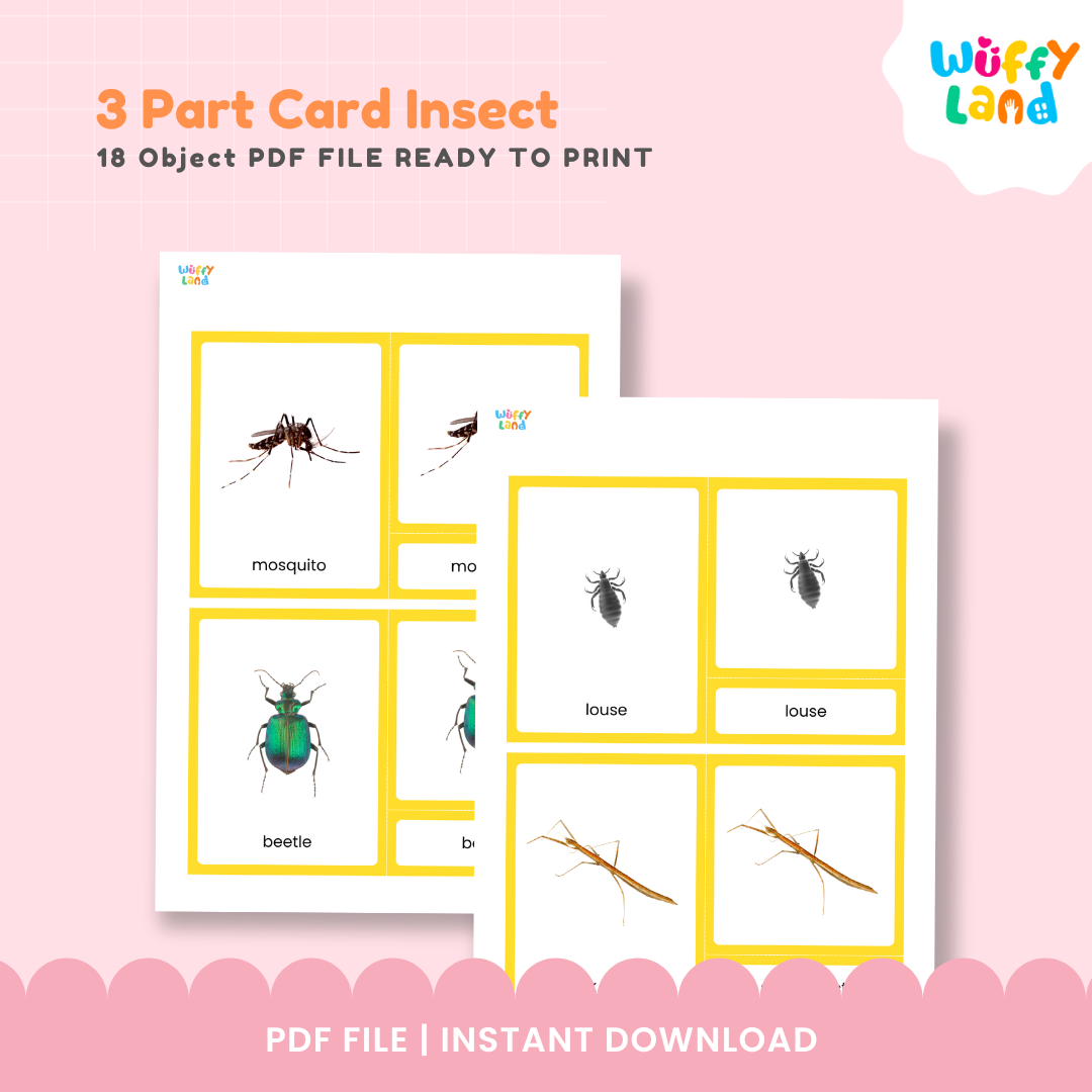 Hadirkan dunia serangga yang menakjubkan ke dalam kelas atau homeschooling Anda dengan Kartu 3 Bagian yang terinspirasi Montessori ini. Set ini berisi 18 kartu serangga bergambar indah dengan label dan kartu kontrol yang serasi, sempurna untuk membangun kosakata, melatih klasifikasi, dan meningkatkan pembelajaran sains dini.