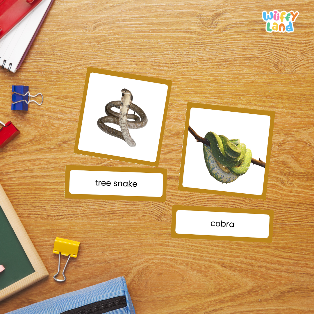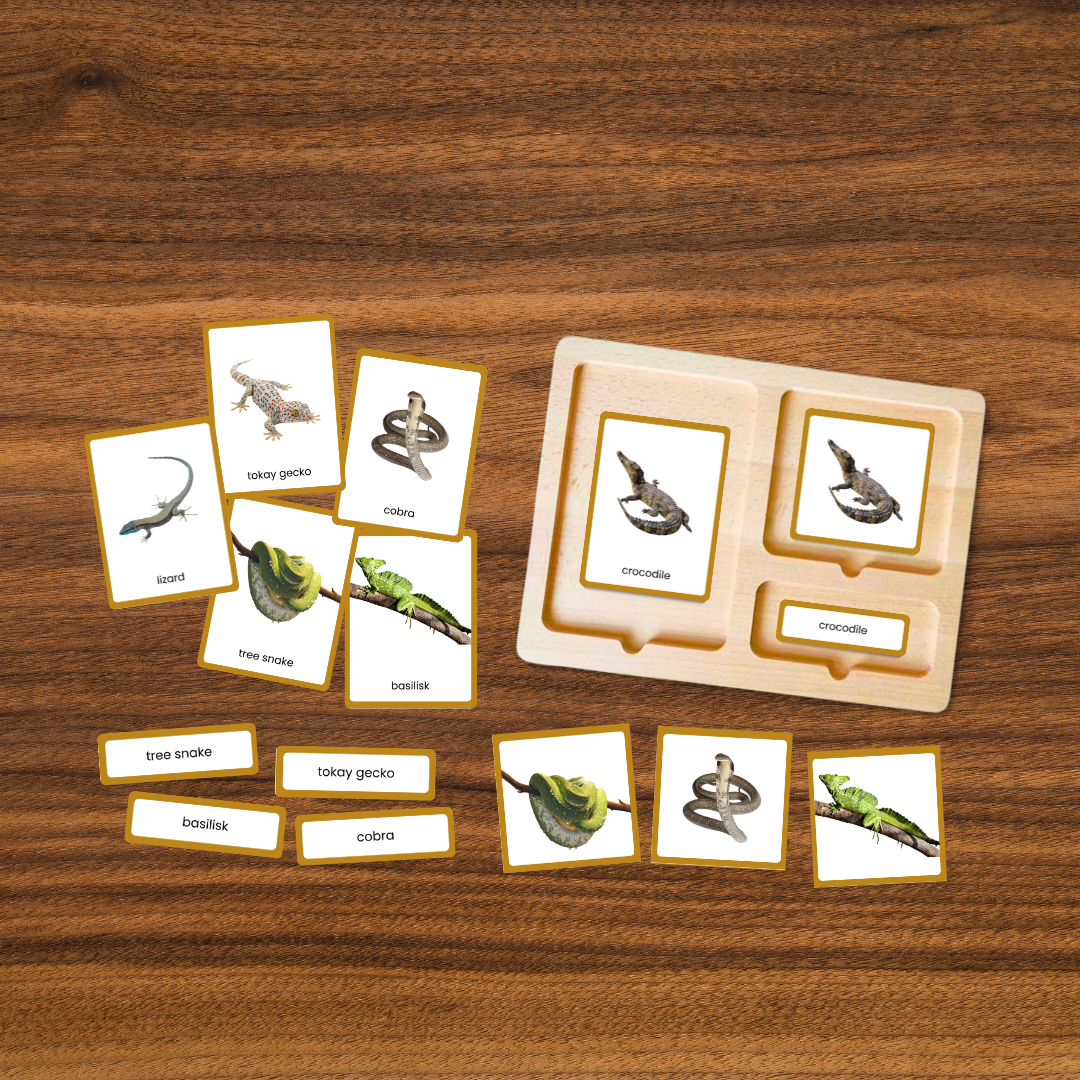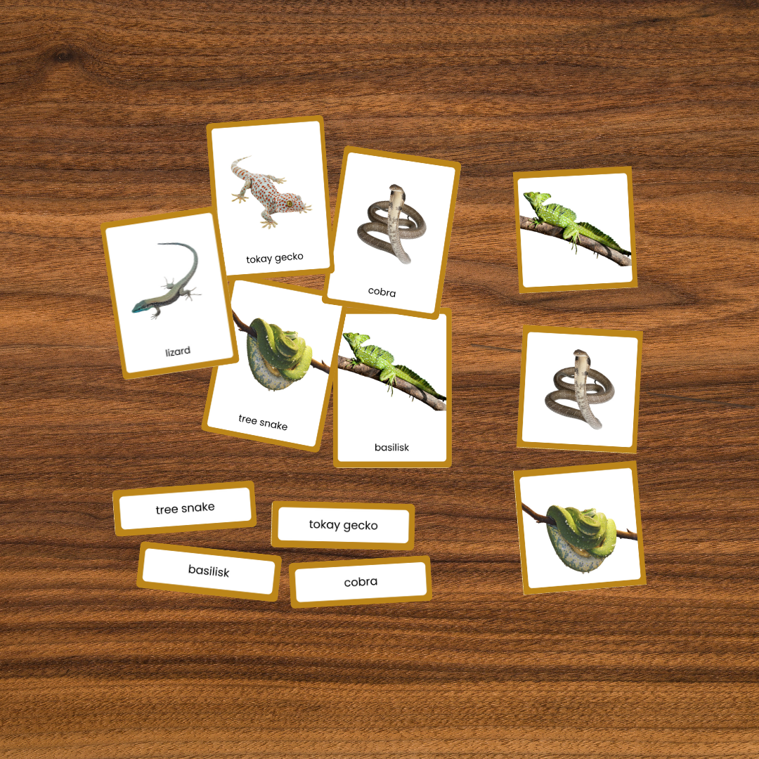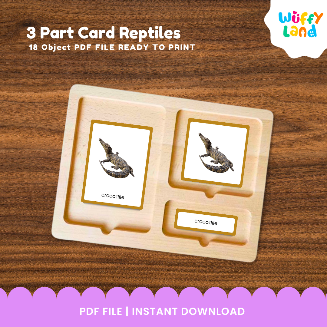 Kartu 3 Bagian Reptil Montessori yang Dapat Dicetak - Aktivitas Identifikasi & Kosakata Hewan