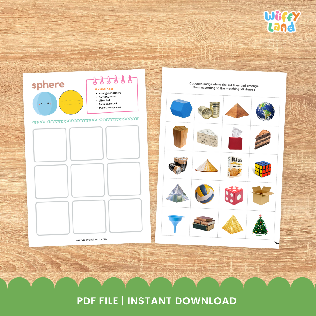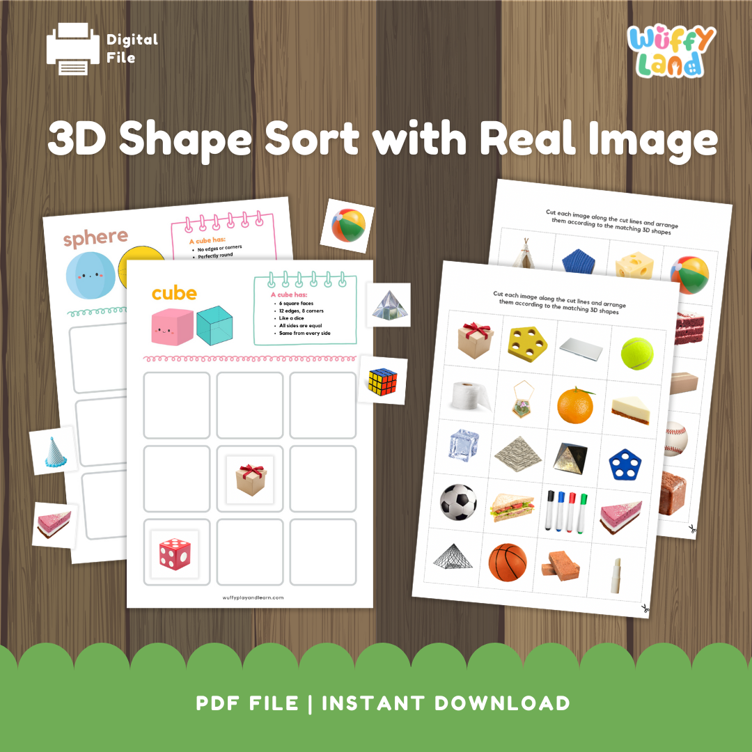 Sortir Bentuk 3D dengan Gambar Asli - Aktivitas Sortir Geometri Praktis