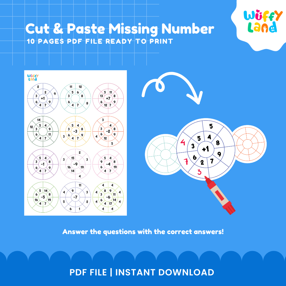 Lembar Kerja Roda Penjumlahan & Pengurangan - Potong & Tempel Pusat Matematika untuk Anak-Anak