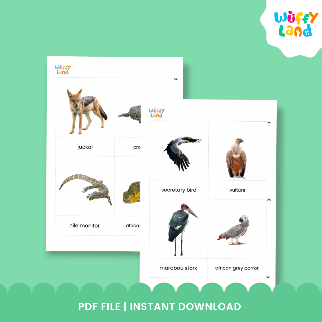 Hadirkan sabana Afrika ke dalam kelas Anda dengan Kartu Montessori 3 Bagian bertema Hewan Afrika yang berilustrasi indah ini ! Sempurna untuk siswa prasekolah, taman kanak-kanak, atau sekolah dasar, sumber daya ini mendukung pengembangan kosakata, keterampilan mencocokkan, dan eksplorasi sains dini.