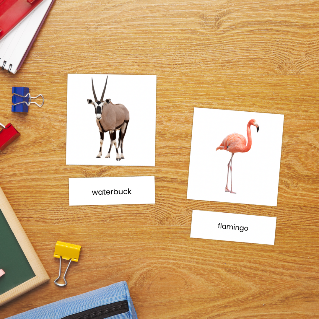 Safari Afrika 58 Hewan Montessori 3 Bagian Kartu Cetak dan Pergi
