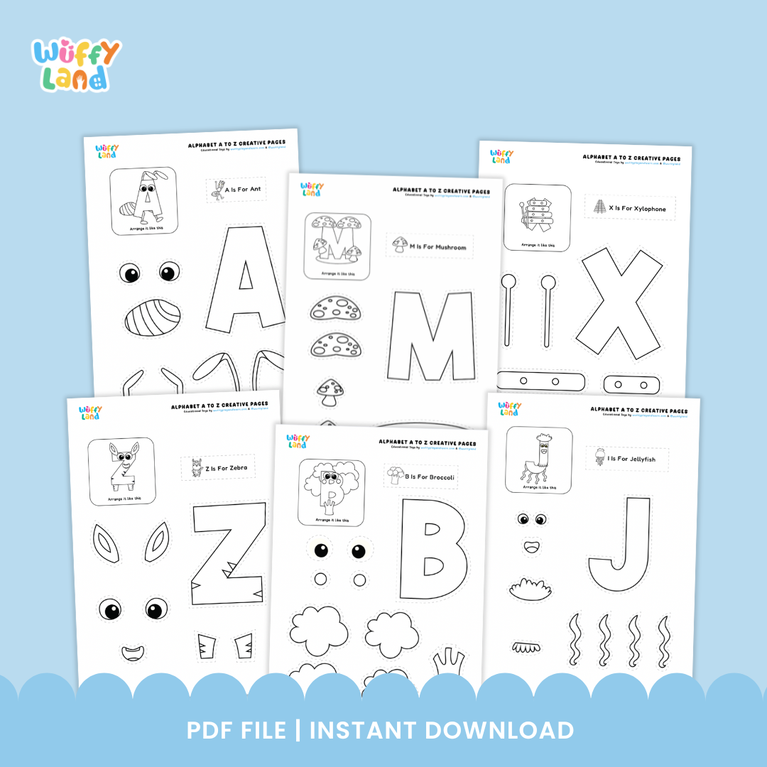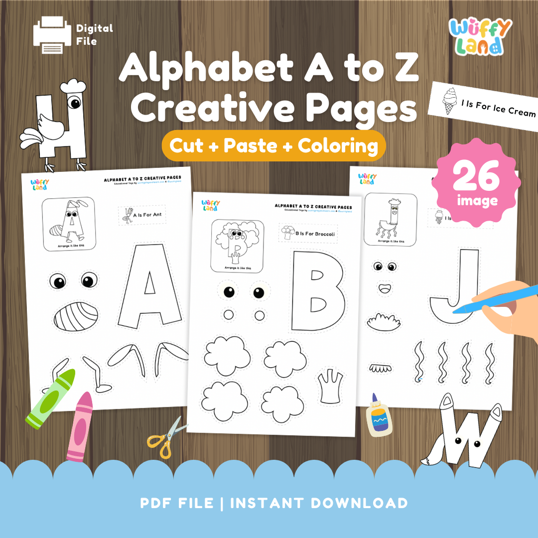 Jadikan belajar alfabet menyenangkan dan langsung praktik dengan paket Halaman Kreatif Alfabet A sampai Z ini! Sempurna untuk prasekolah, pra-TK, taman kanak-kanak, dan anak usia dini, sumber daya ini mencakup 26 lembar kerja yang menarik — satu untuk setiap huruf alfabet — yang menggabungkan aktivitas menggunting, menempel, dan mewarnai.