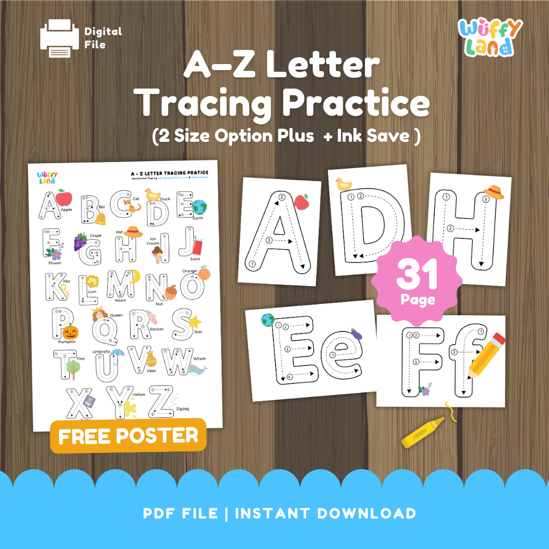✨ BONUS: Poster Alfabet A–Z dengan gambar petunjuk