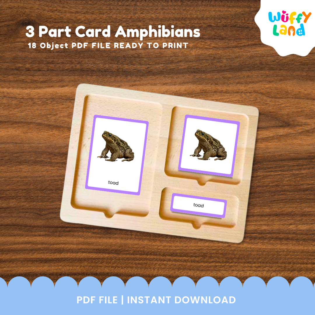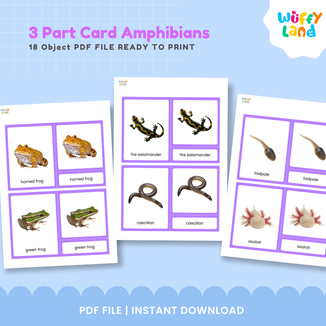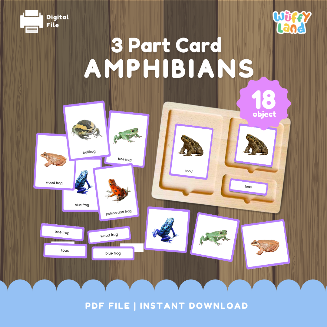 Kartu 3 Bagian Amfibi - Aktivitas Mencocokkan Sains Montessori