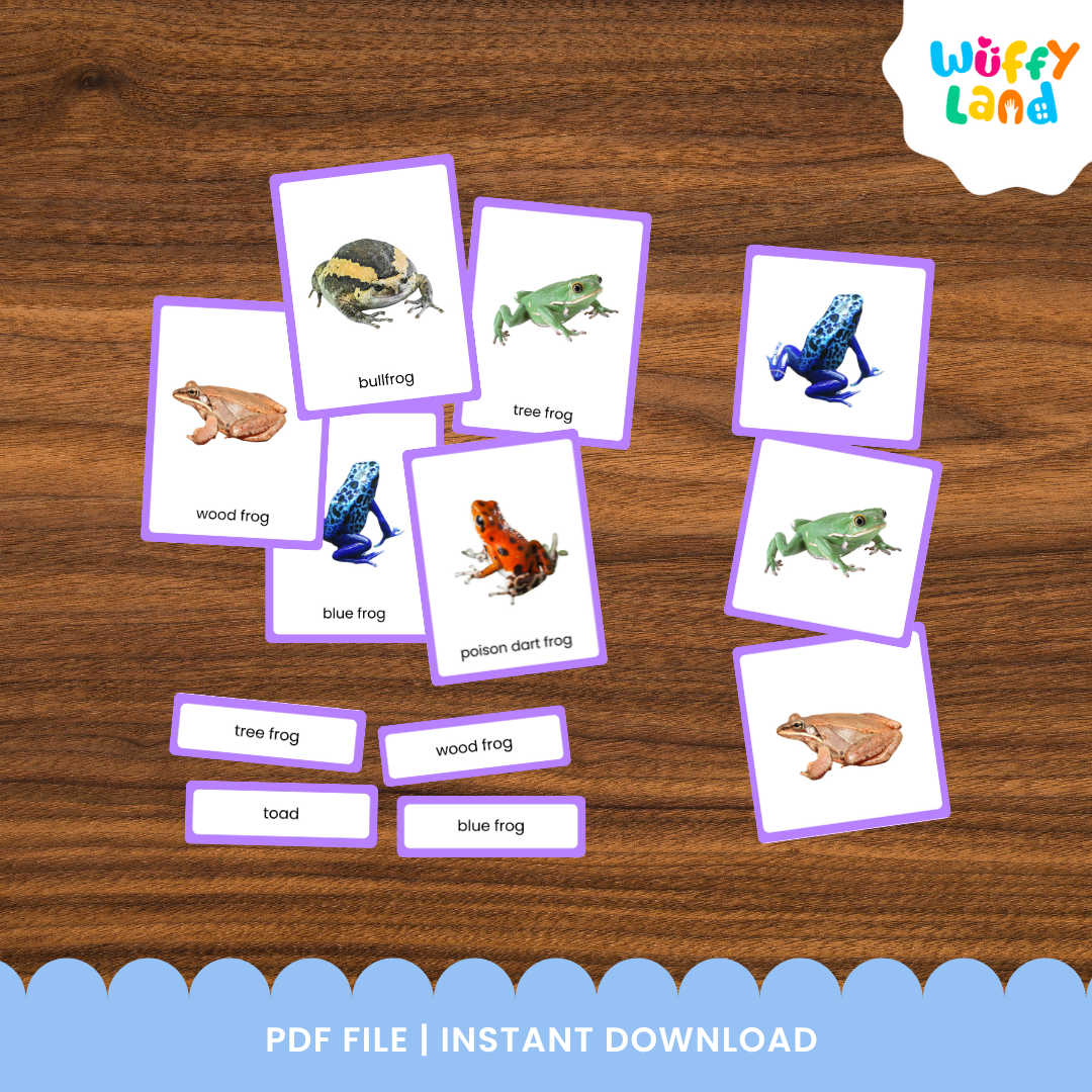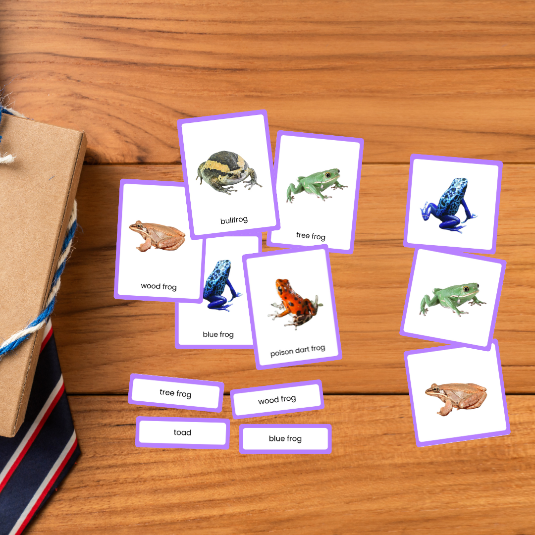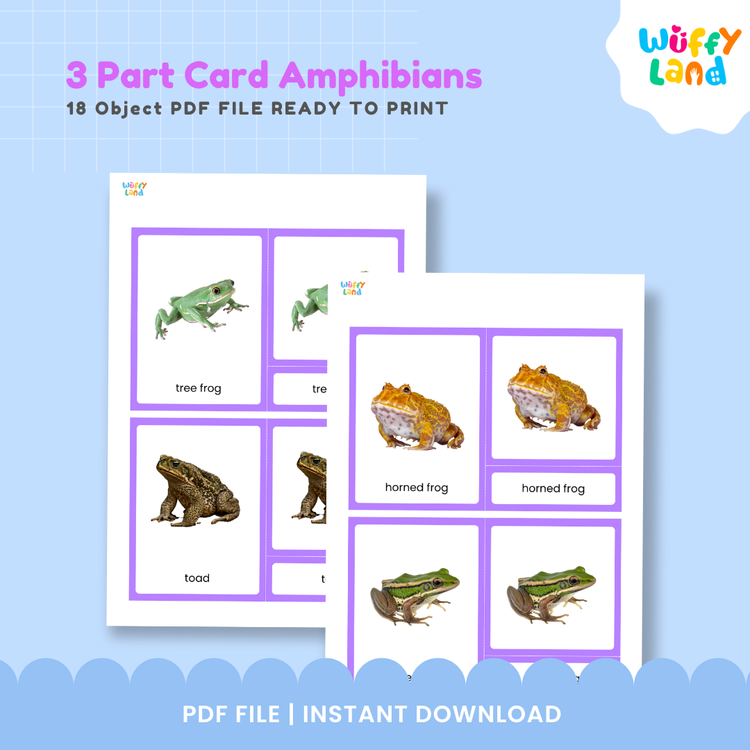 Kartu 3 Bagian Amfibi - Aktivitas Mencocokkan Sains Montessori