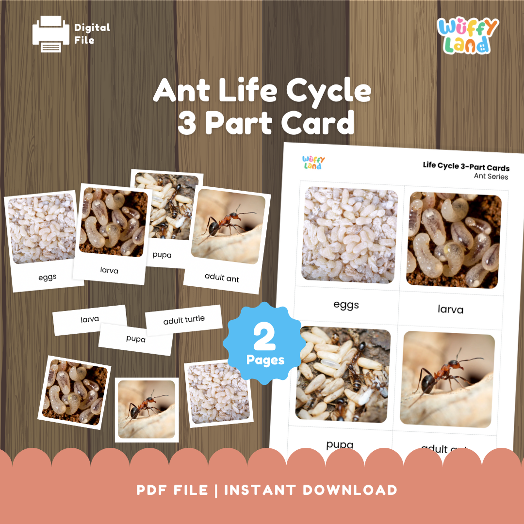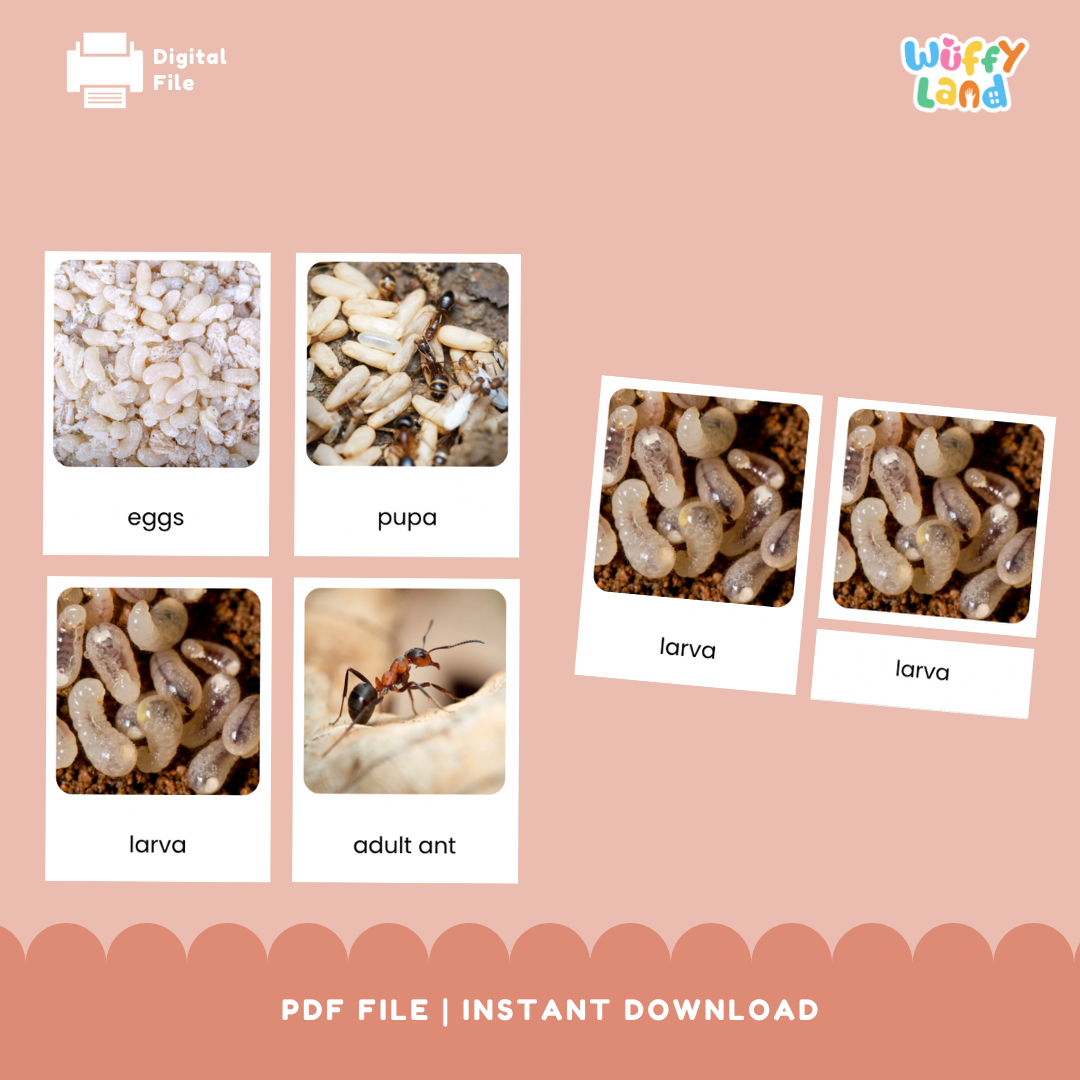 Kartu Siklus Hidup Semut Bagian 3 - Aktivitas Sains Montessori | Foto & Label Asli