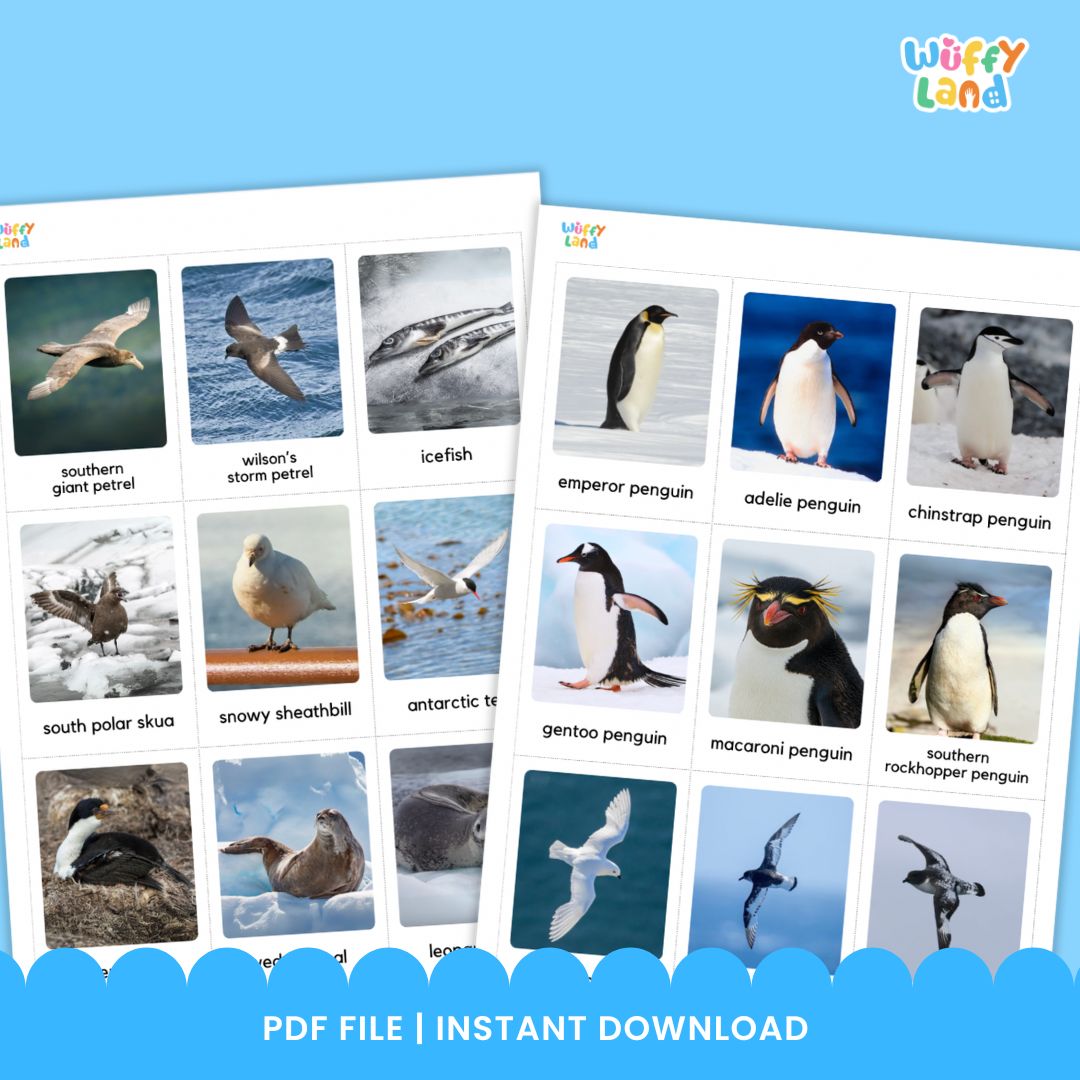 Kartu Flash Montessori Hewan Antartika dengan Gambar Asli