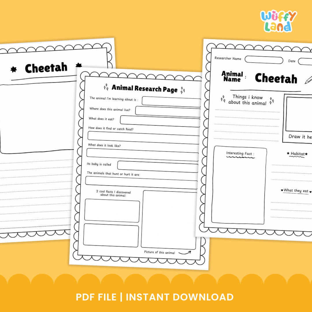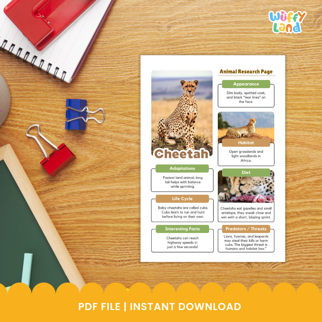 Berlari cepat untuk meneliti bersama hewan darat tercepat ! Paket siap pakai ini membantu siswa K–3 berlatih meneliti, mencatat, dan menulis teks informasi sambil belajar tentang cheetah.