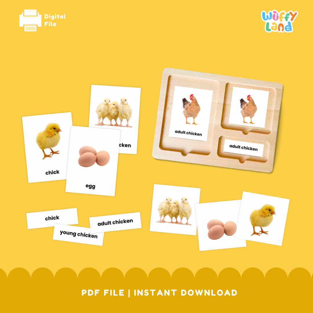 Kartu Siklus Hidup Ayam Bagian 3 - Aktivitas Sains Hewan Montessori - Foto Realistis
