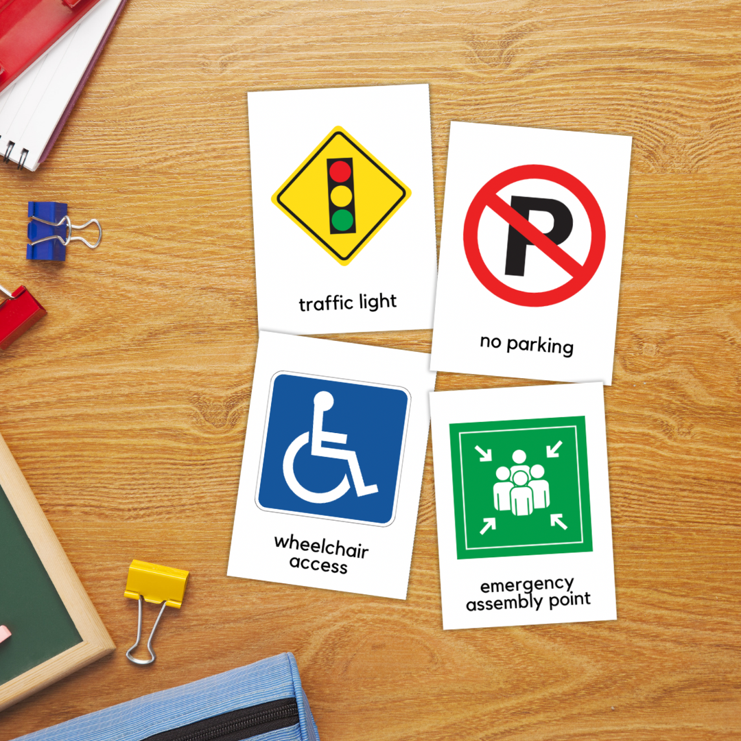 Kartu Flash Rambu Komunitas - Kartu Rambu Lalu Lintas & Keselamatan untuk Anak, ESL, Pendidikan Khusus
