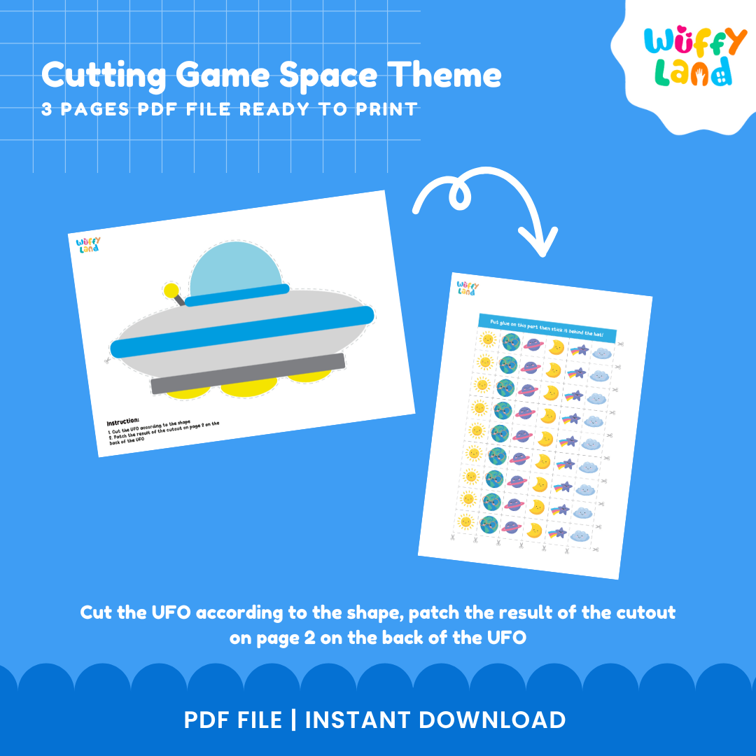3 halaman PDF: latihan memotong + kerajinan UFO