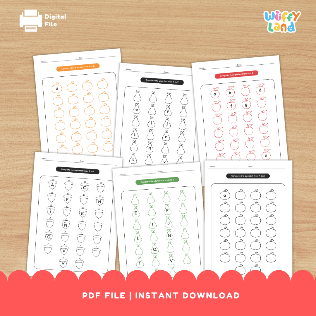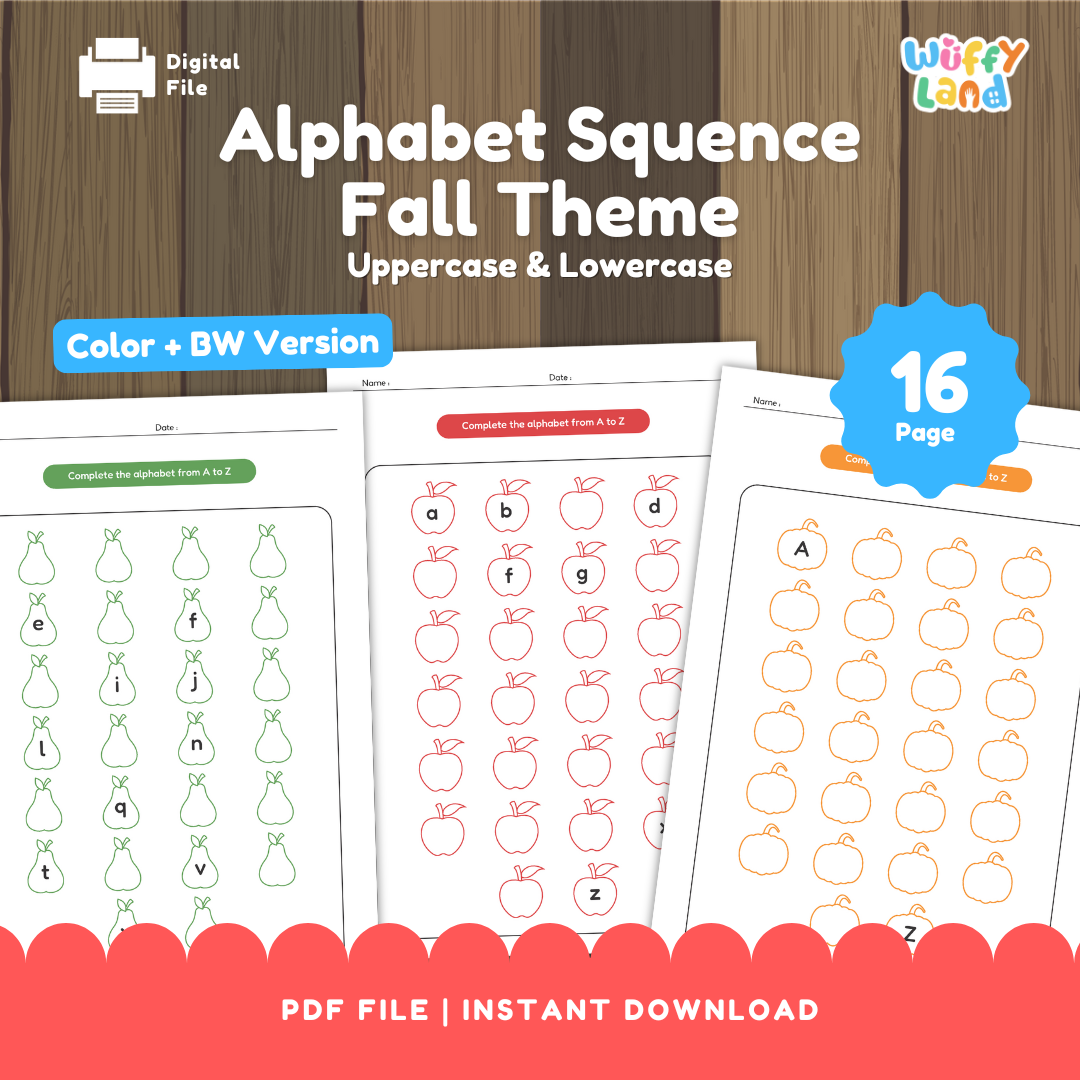 Berikan sentuhan musim gugur yang nyaman untuk latihan ABC Anda! Siswa melengkapi alfabet secara berurutan dari A–Z (atau a–z) dengan menulis huruf-huruf di dalam ikon labu, apel, dan pir yang lucu . Beberapa huruf panduan telah diisi di setiap halaman untuk membantu siswa sekaligus memberikan banyak latihan mandiri.