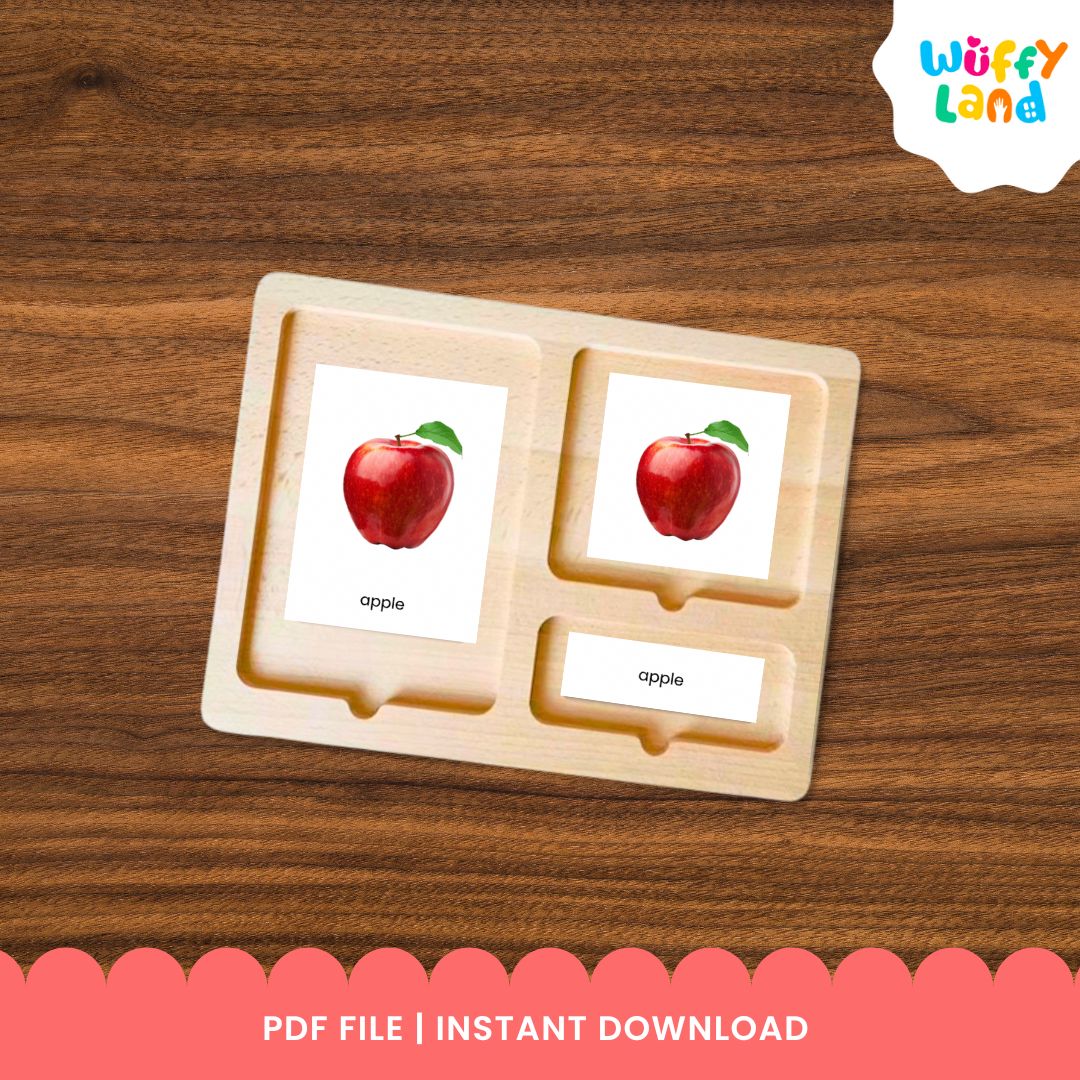 Kartu 3 Bagian Terinspirasi Buah Montessori dengan Gambar Asli