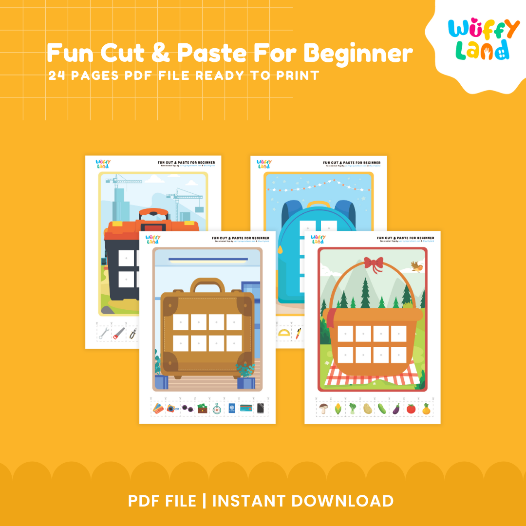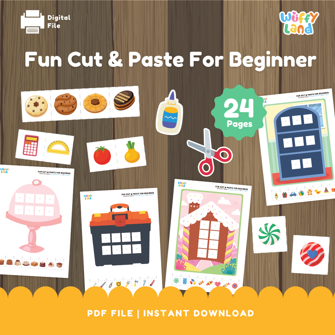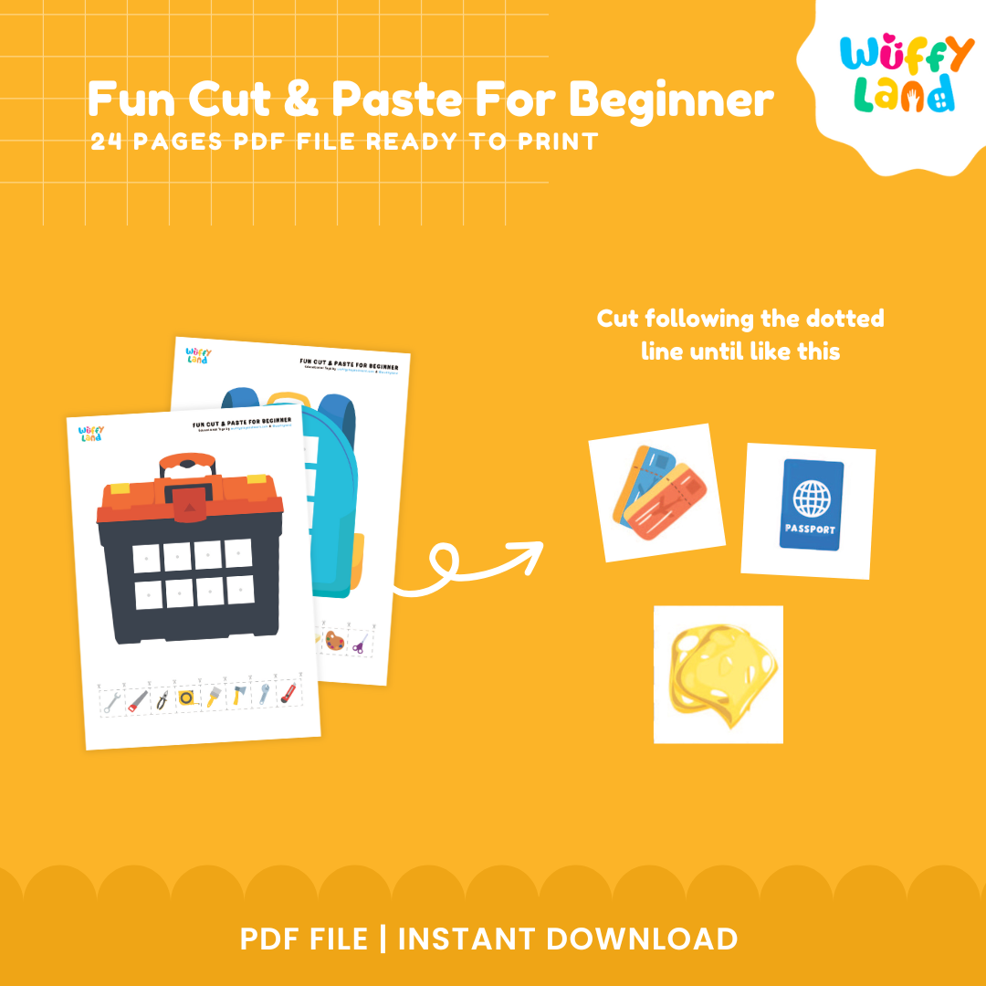 Paket aktivitas Potong & Tempel untuk Pemula ini sempurna untuk si kecil yang baru mulai berlatih menggunakan gunting! 🧒👧