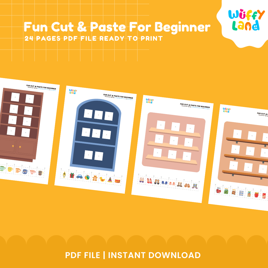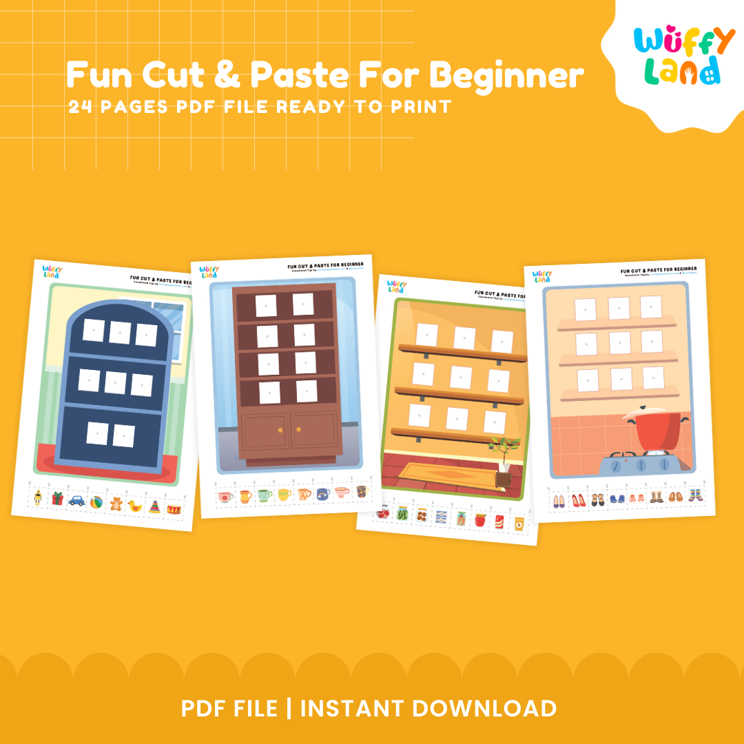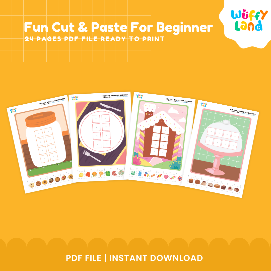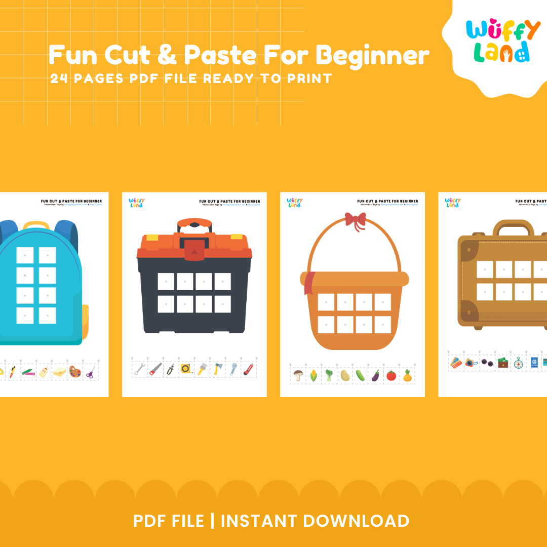 Paket aktivitas Potong & Tempel untuk Pemula ini sempurna untuk si kecil yang baru mulai berlatih menggunakan gunting! 🧒👧