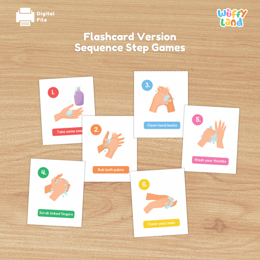 Ajarkan dan perkuat perilaku yang benar cuci tangan dengan urutan visual yang jelas dan ramah anak. Sempurna untuk area wastafel, kamar mandi, unit kesehatan, ruang perawat, dan rutinitas kelas. Gunakan poster untuk pengingat seluruh kelas dan kartu flash bernomor untuk pemodelan, praktik pengurutan, atau pusat.