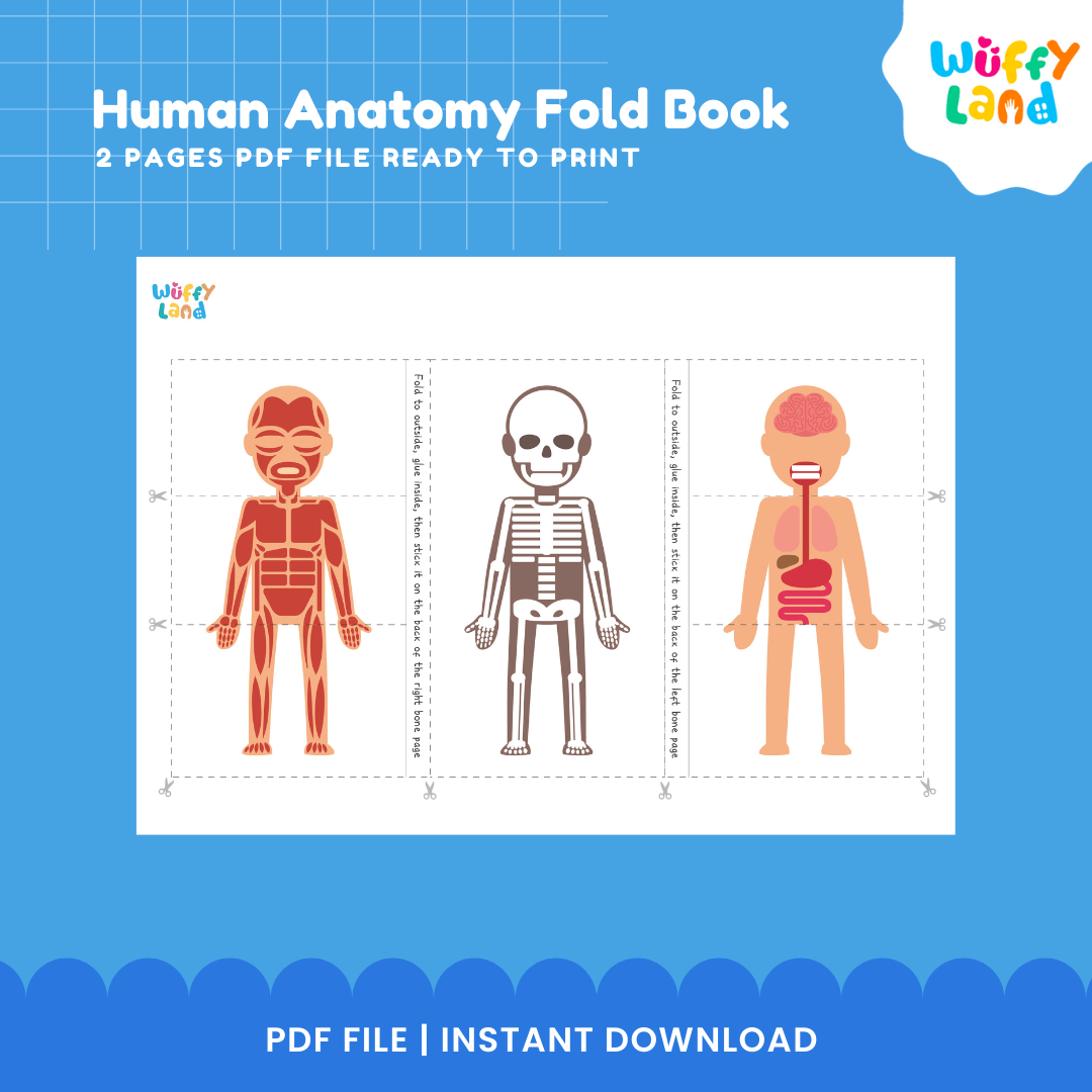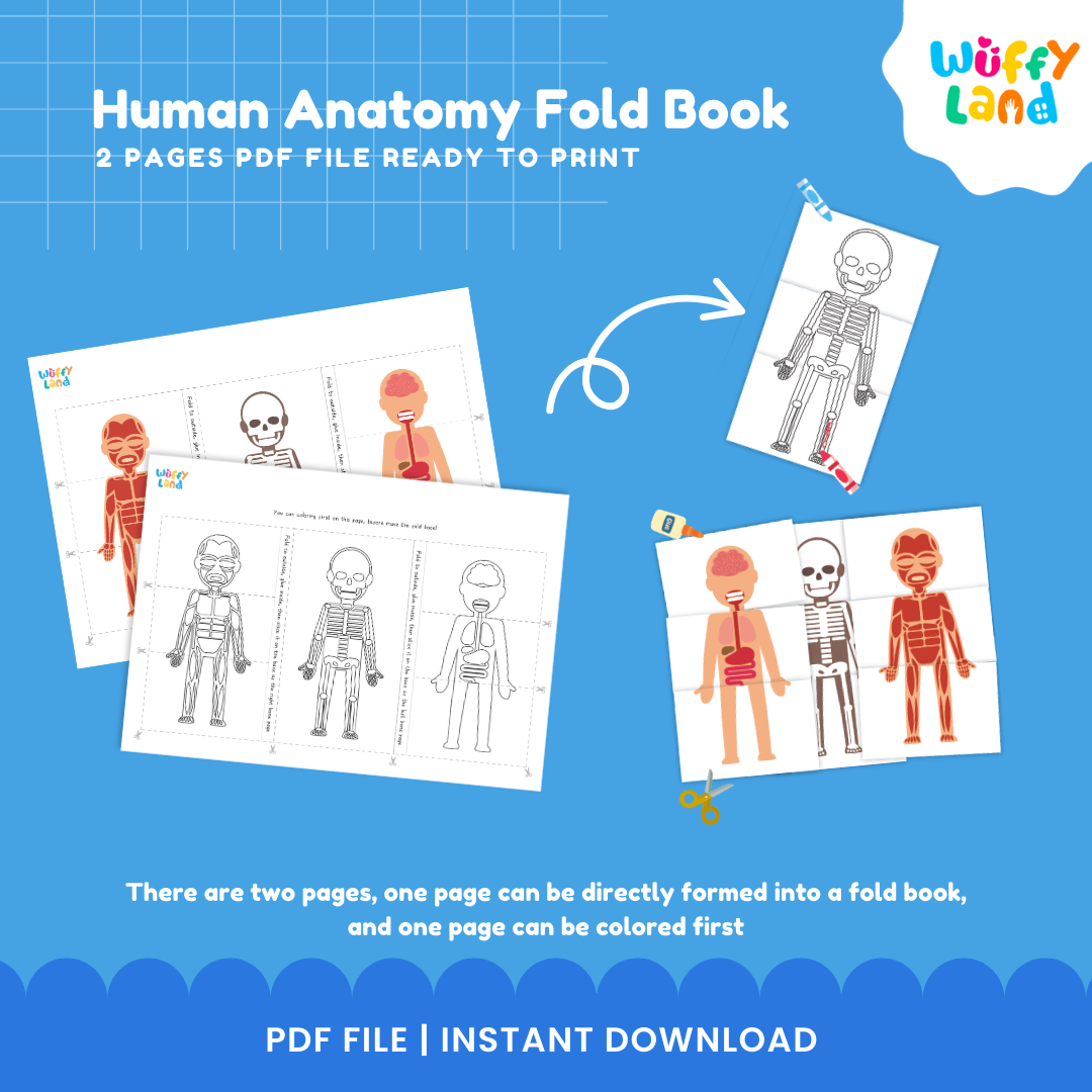 Buku Lipat Anatomi Manusia - Aktivitas Potong & Tempel Sistem Tubuh yang Dapat Dicetak - Sains untuk Anak