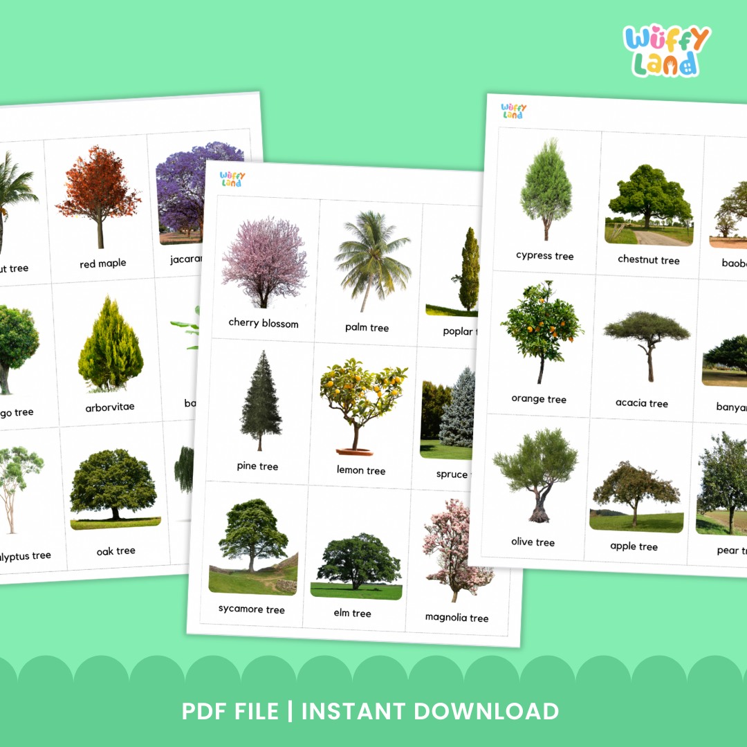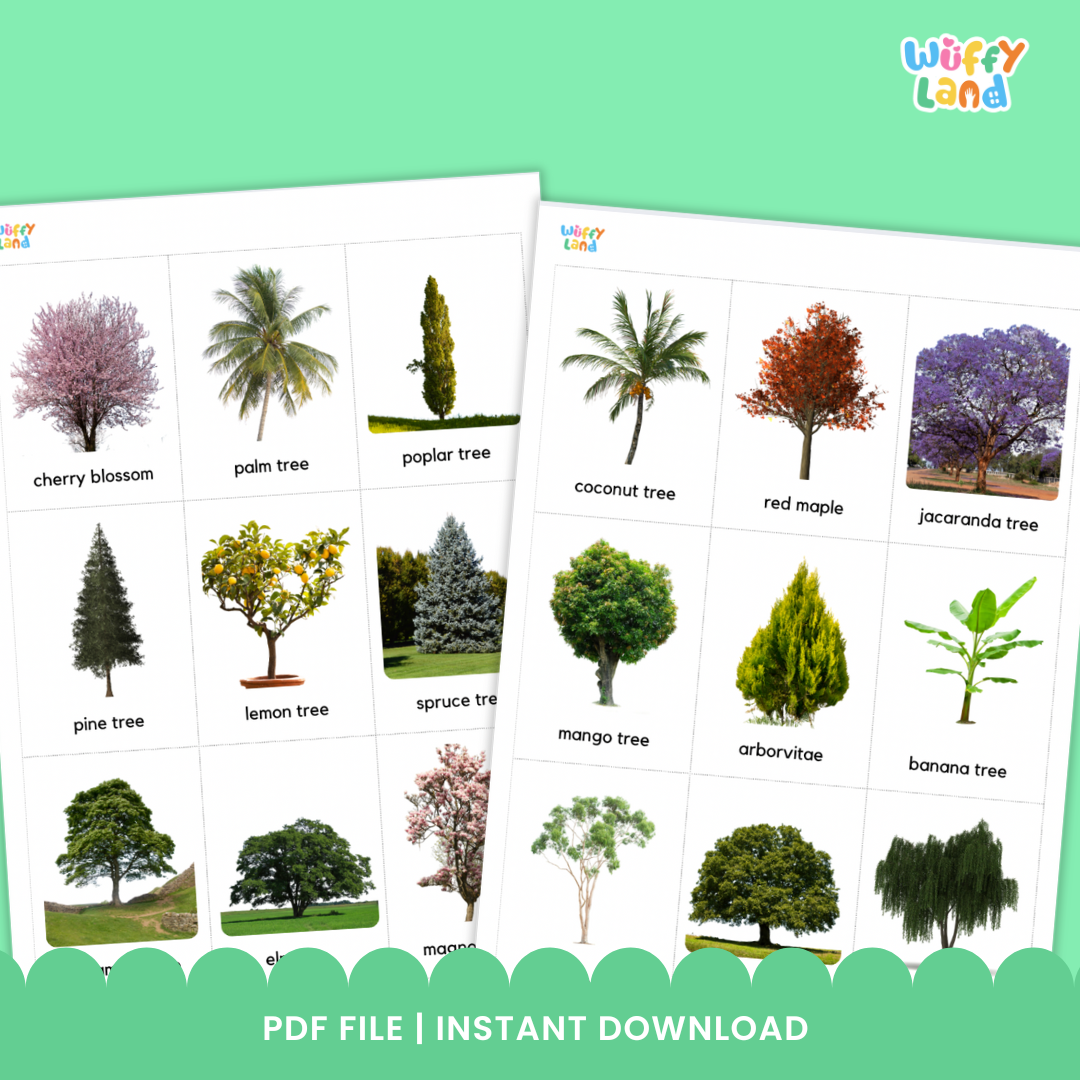 Kembangkan kosakata sains dan keterampilan klasifikasi dengan set ini 27 kartu flash pohon foto asli . Sempurna untuk unit tanaman, pojok alam, Hari Bumi, atau kegiatan yang terinspirasi Montessori.