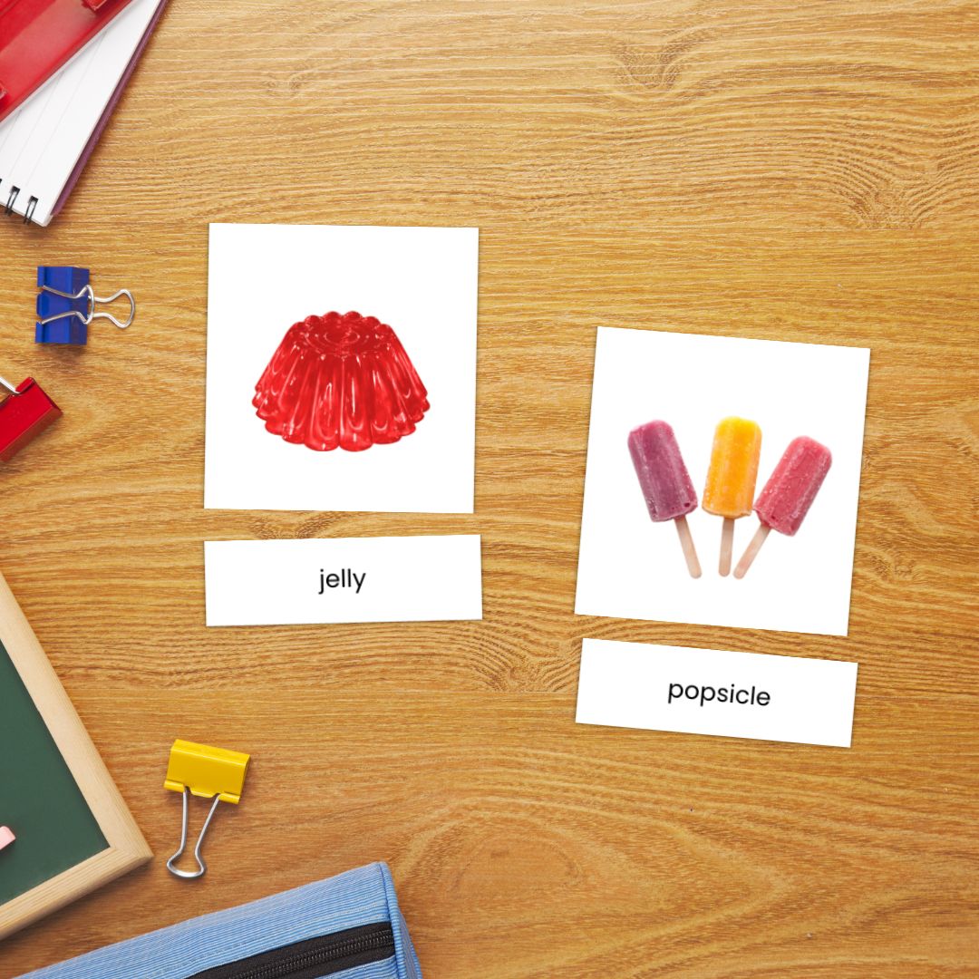 Kartu 3 Bagian Montessori Makanan dan Minuman Objek Nyata