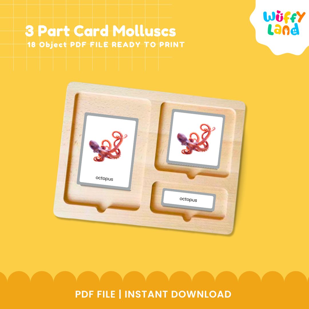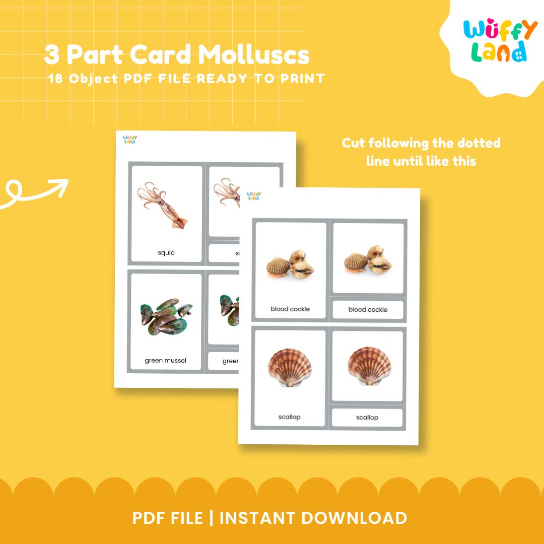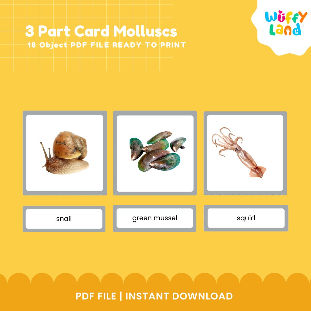 Kartu 3 Bagian Montessori Zoologi Moluska atau Moluska