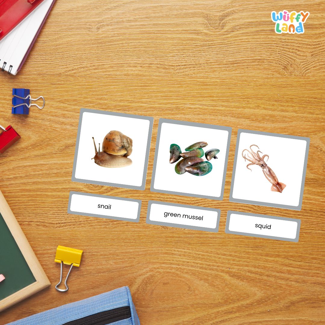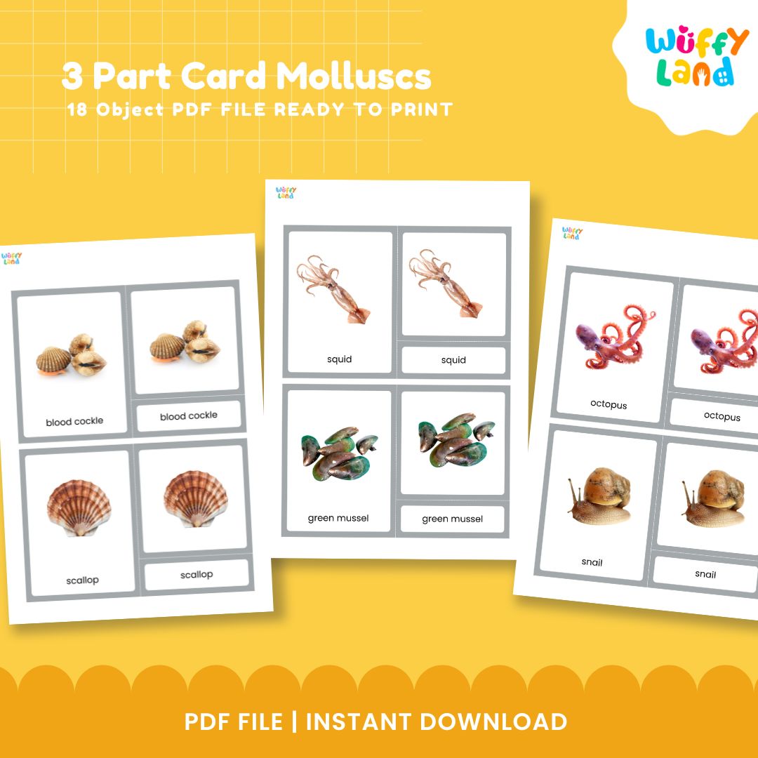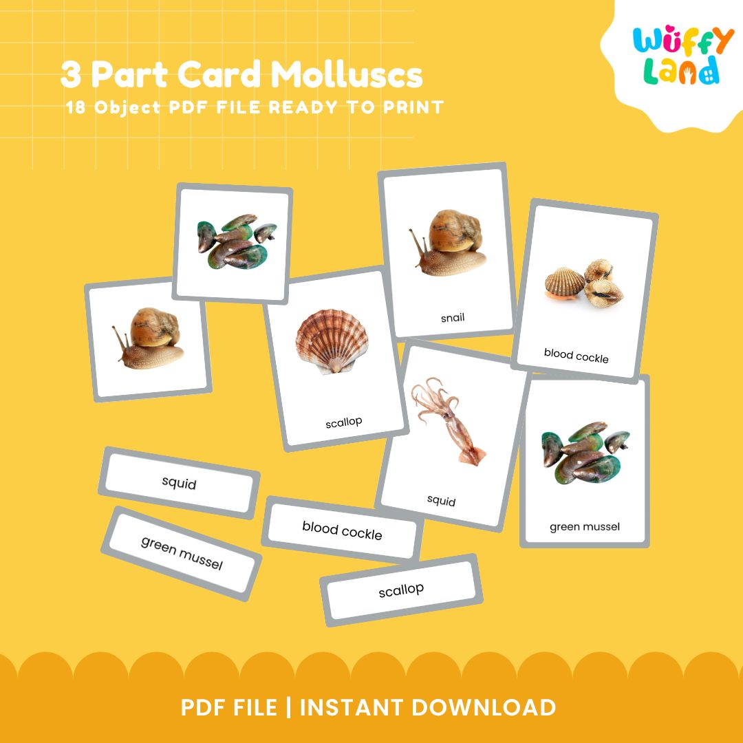 Kartu 3 Bagian Montessori Zoologi Moluska atau Moluska