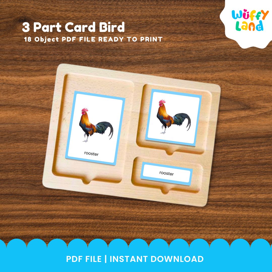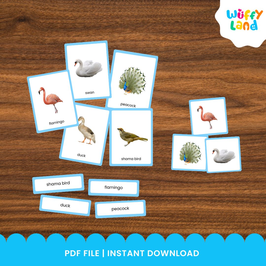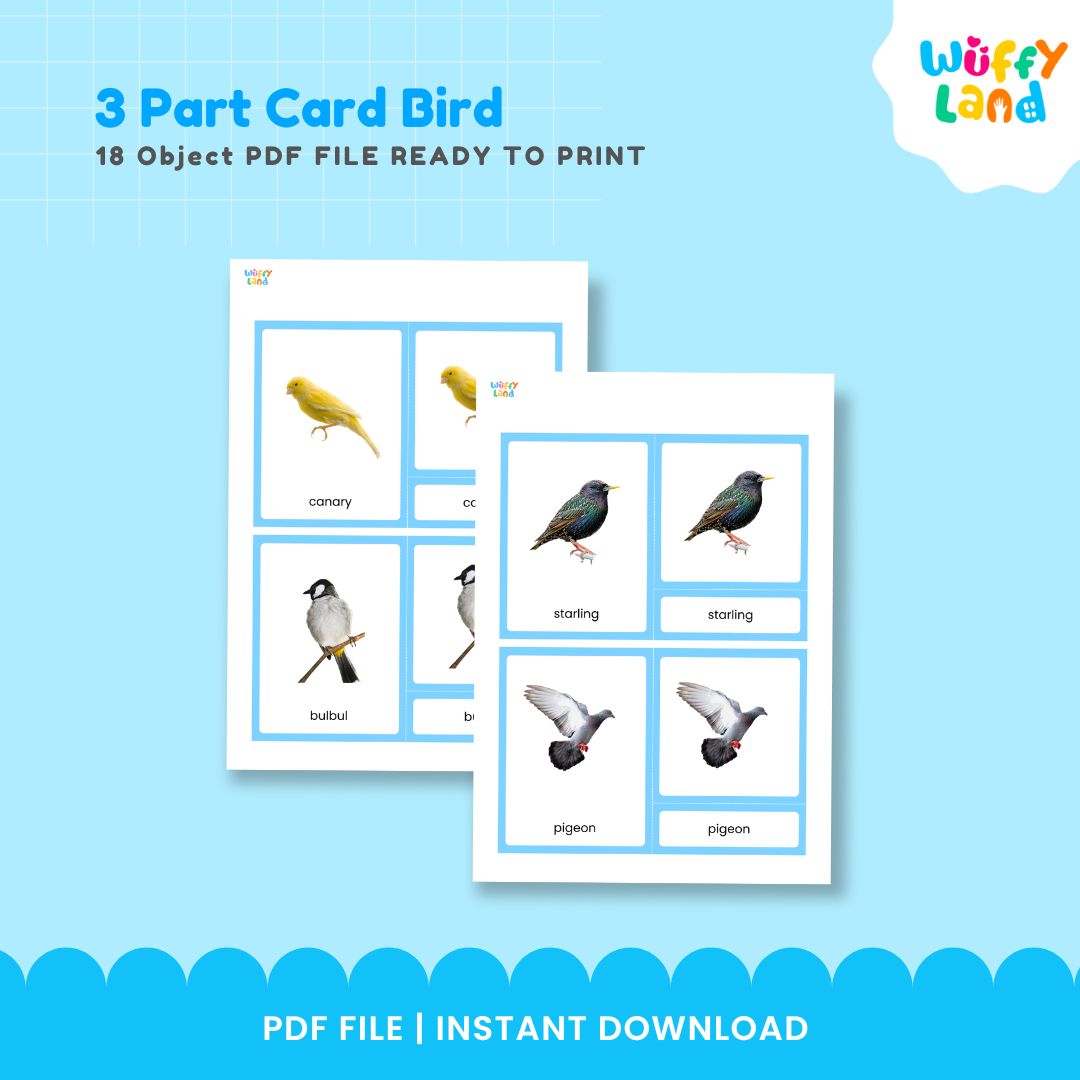 Kartu 3 Bagian Montessori Seri Burung Zoologi