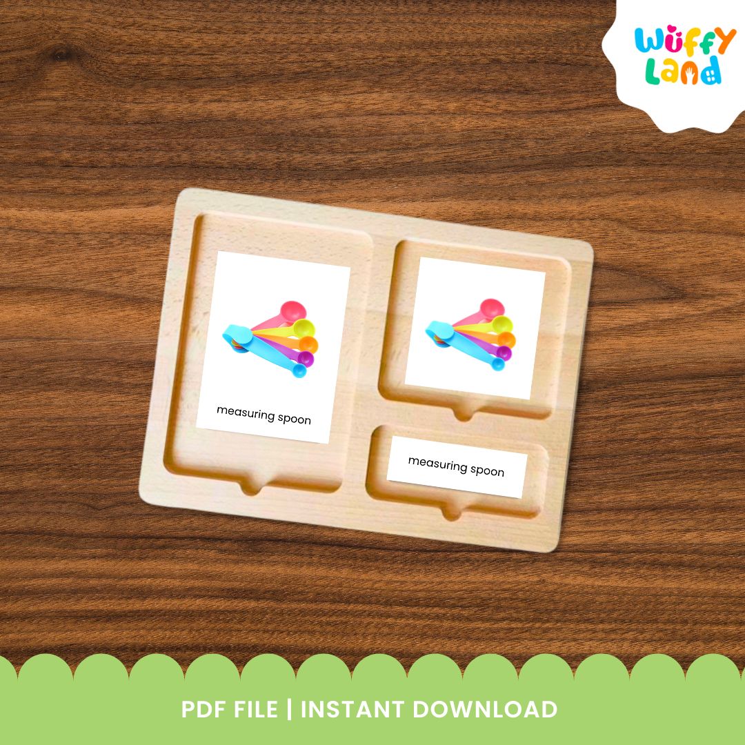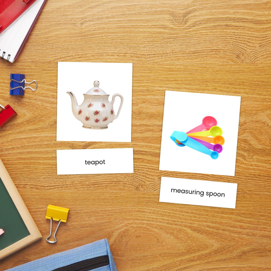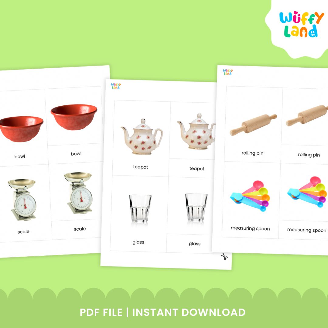 Hadirkan pembelajaran kehidupan nyata ke dalam kelas atau sekolah rumah Anda dengan desain yang indah ini Kartu Tiga Bagian Peralatan Dapur Montessori !