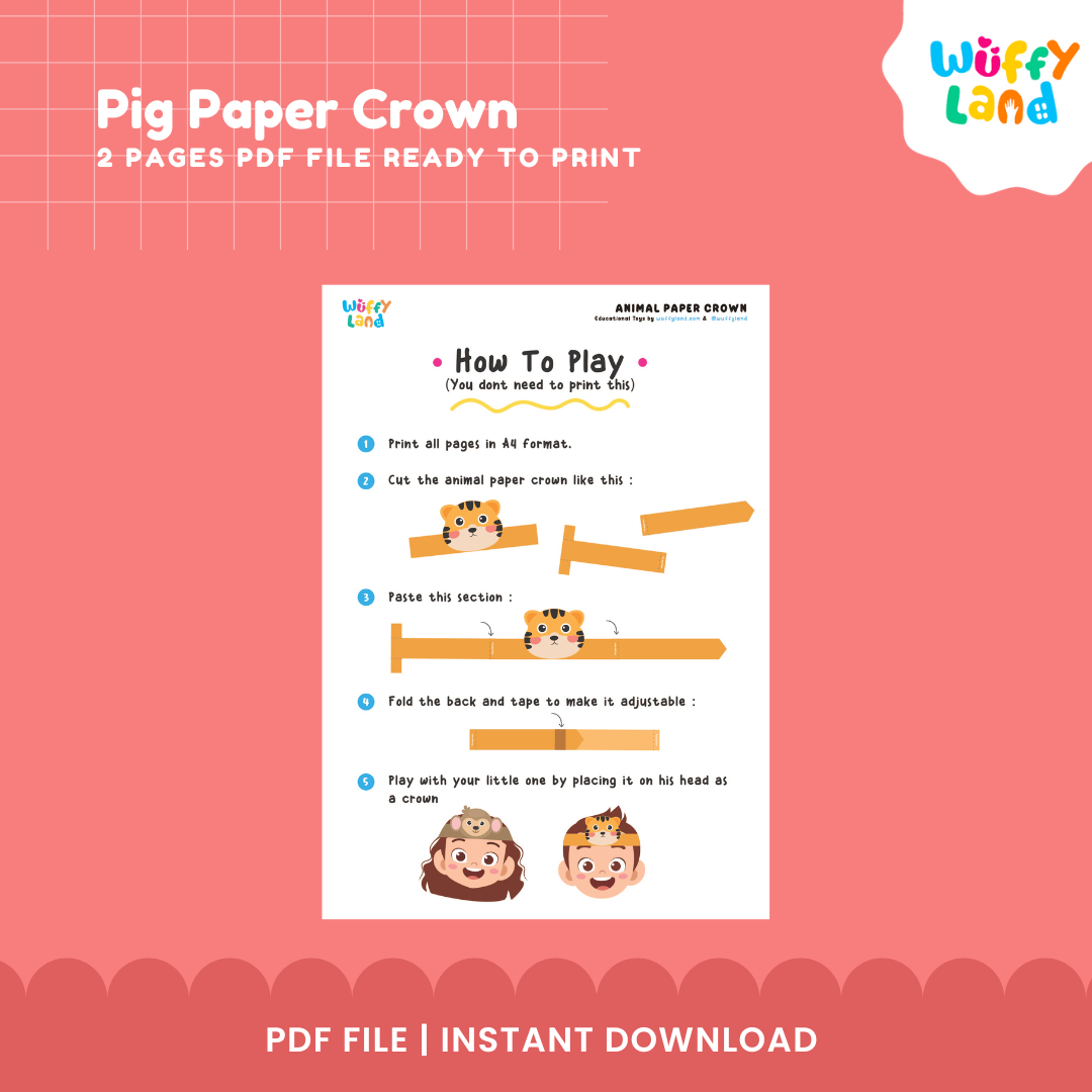 Kerajinan Mahkota Kertas Babi - Topi Ikat Kepala Hewan Ternak yang Dapat Dicetak - Aktivitas Prasekolah yang Menyenangkan