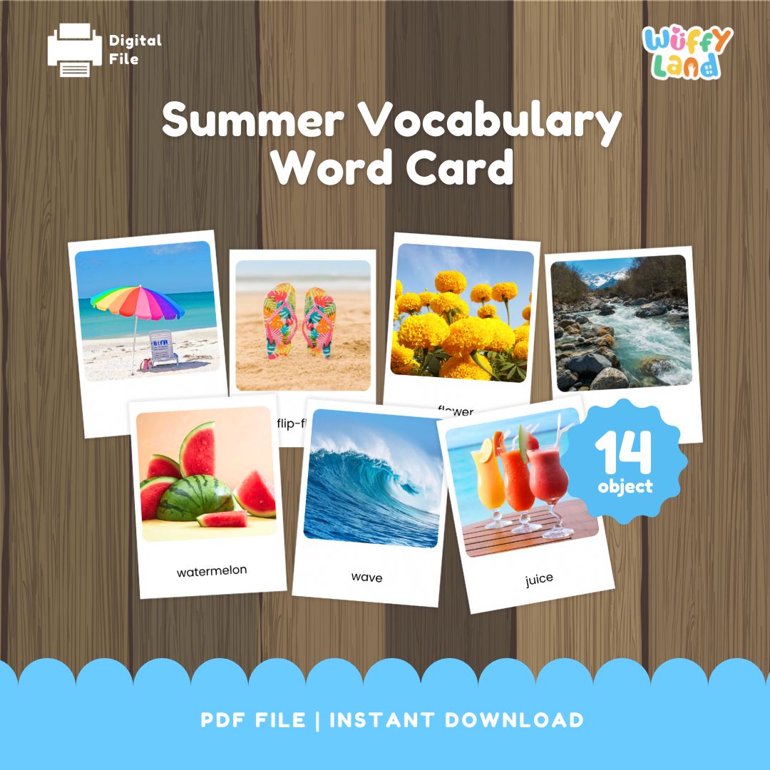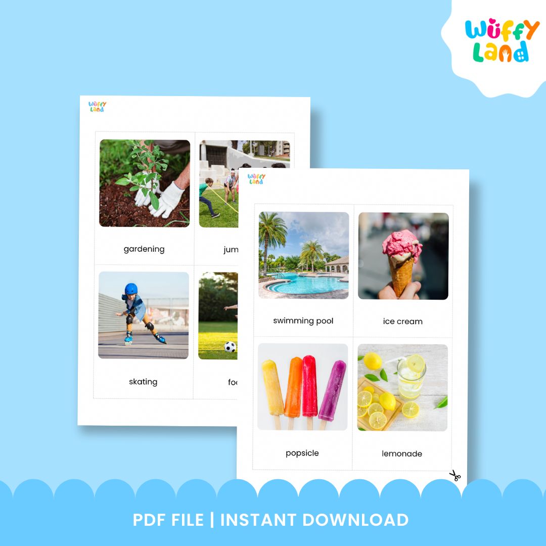 Kartu Kata Kosakata Musim Panas dengan Kartu Flash Terapi Wicara ESL Gambar Nyata