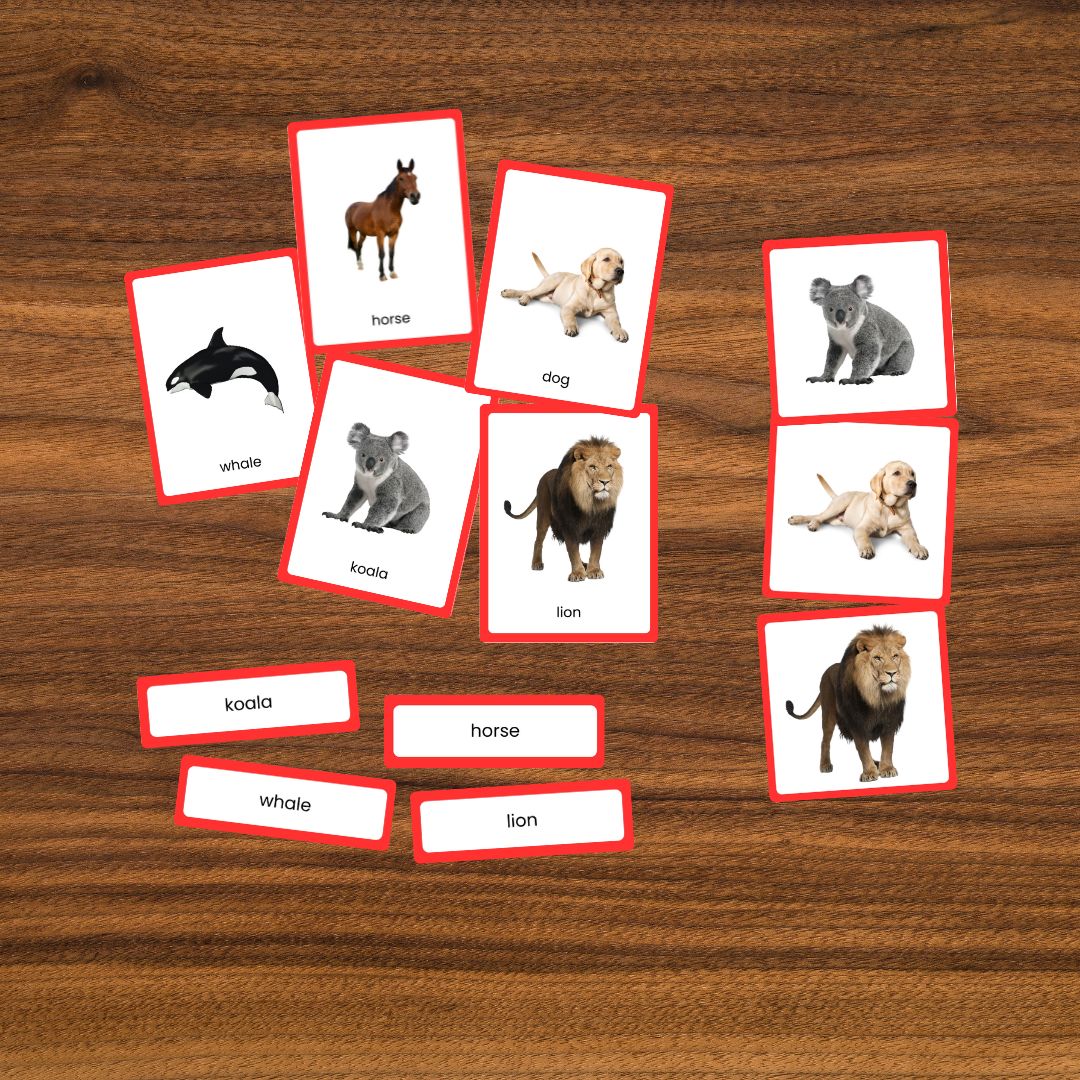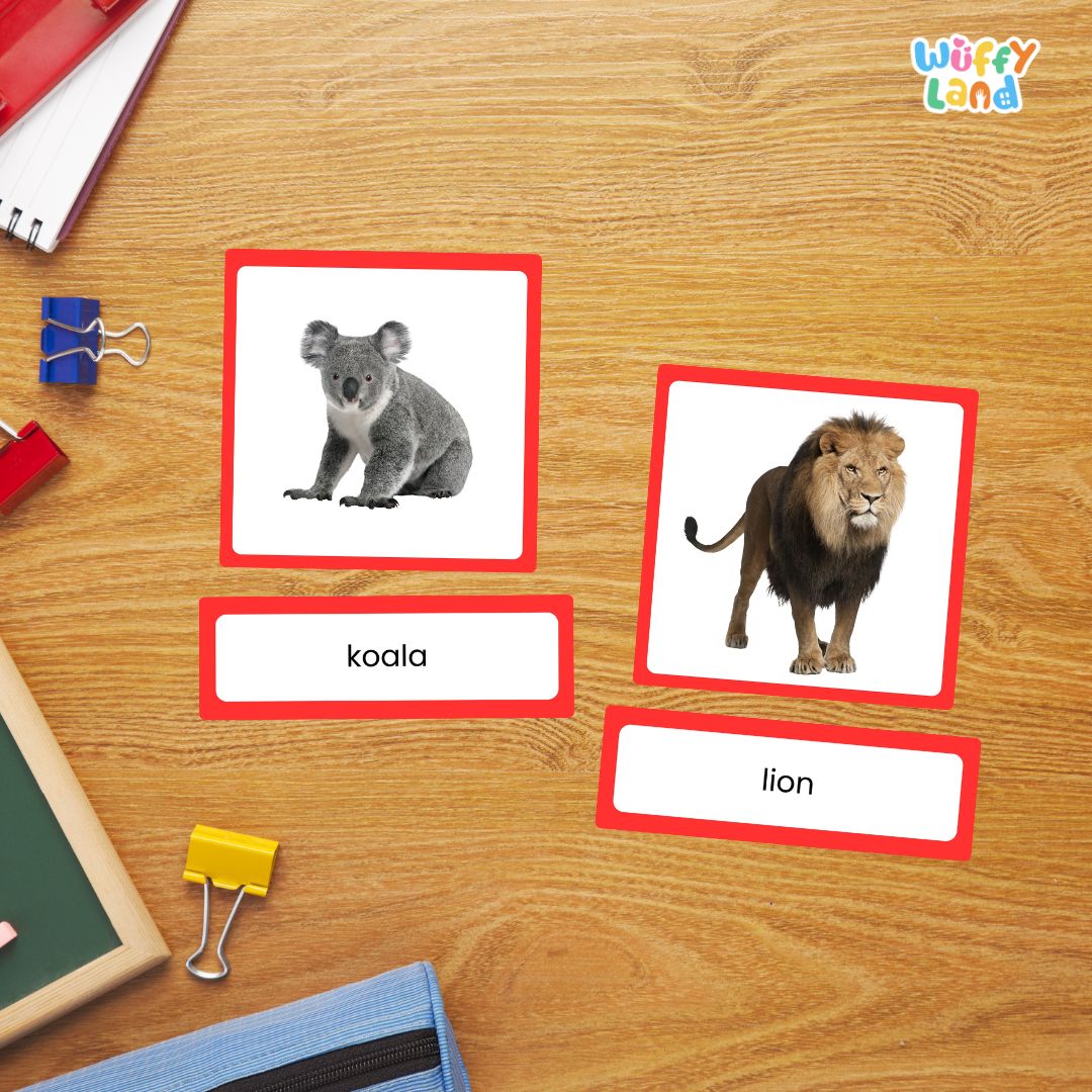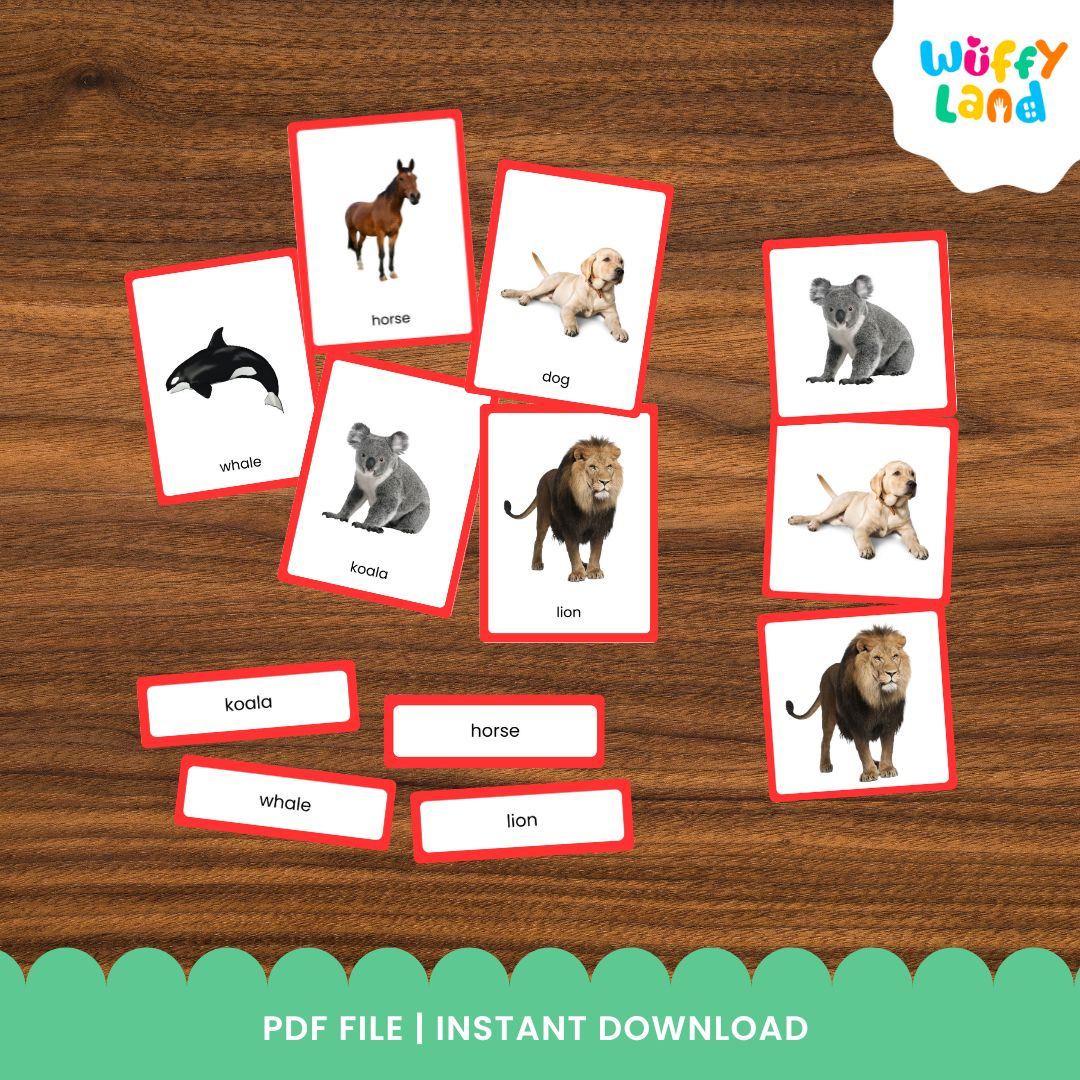 Jenis-jenis Mamalia MONTESSORI 3 bagian kartu GAMBAR NYATA