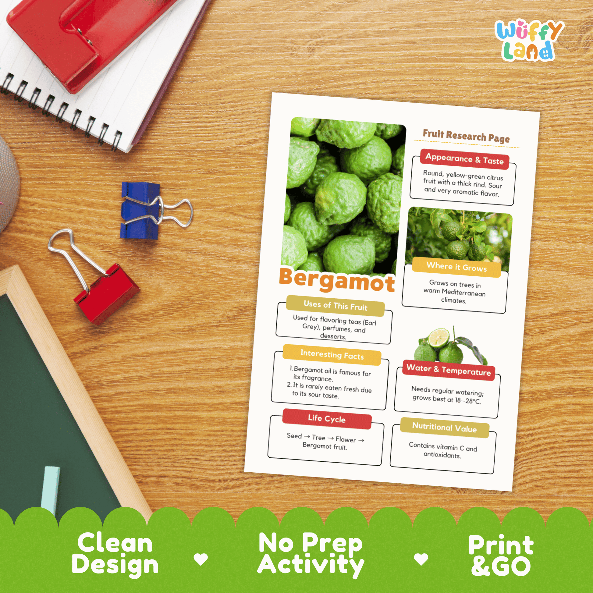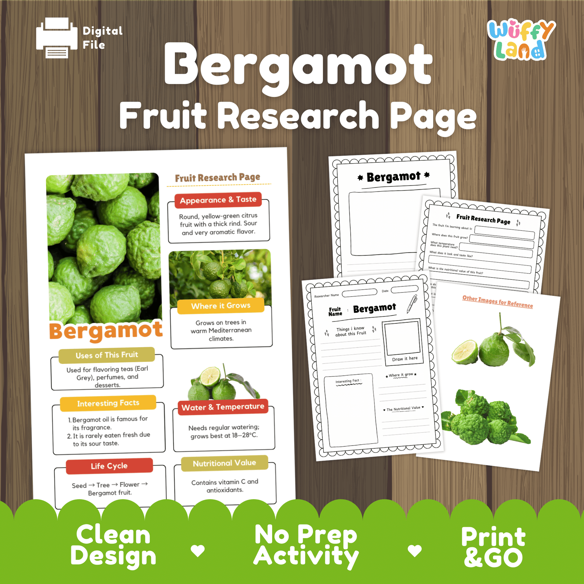 Explore the aromatic world of Bergamot! Learn why this sour citrus is famous for Earl Grey tea and perfumes. Packet includes life cycle poster, nutrition facts, real photos, and research worksheets.