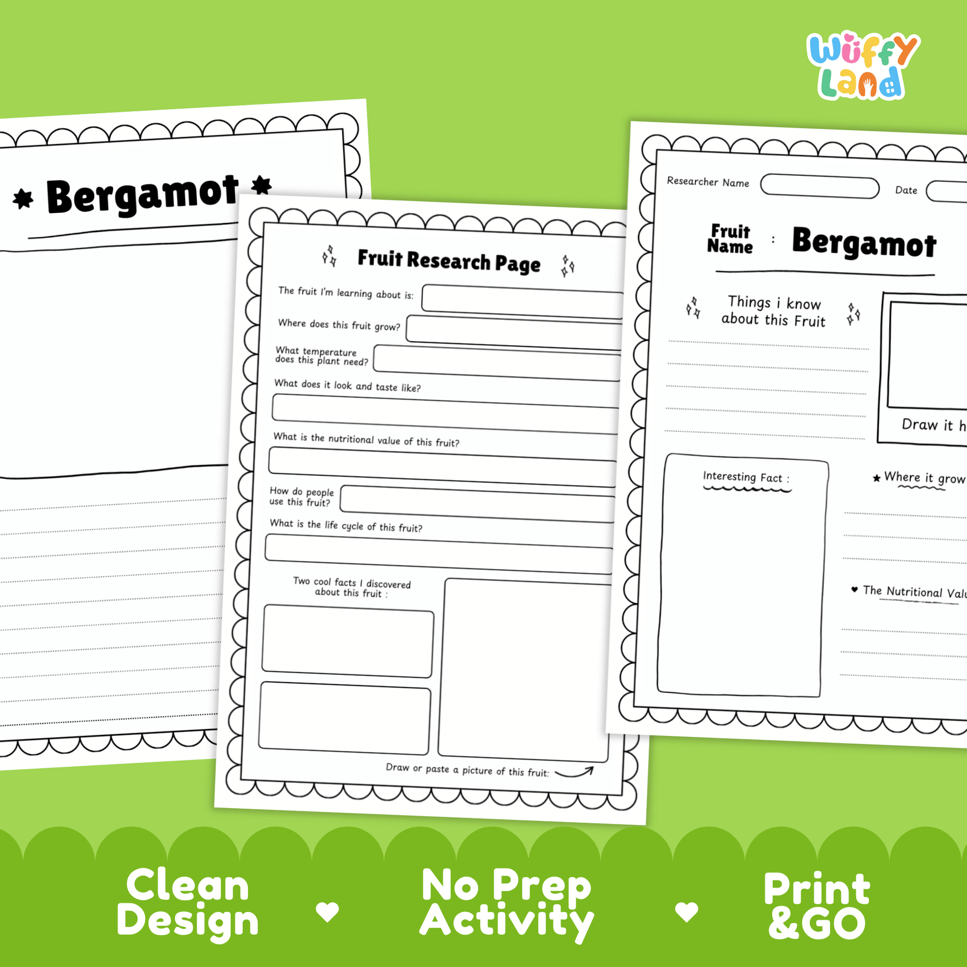 - Fact Finding: Worksheets to record information about where it grows and its nutritional value.