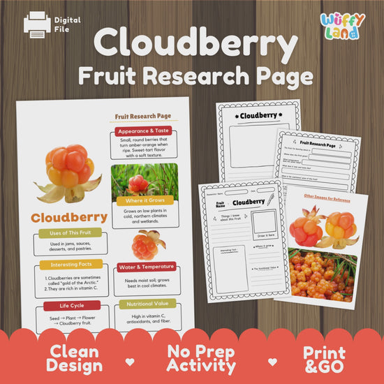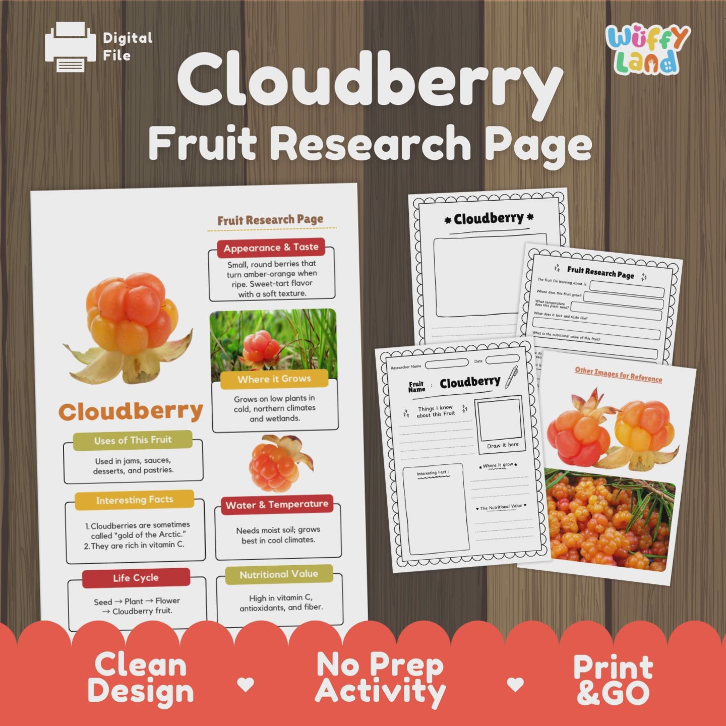 Teach your students all about the unique and hardy Cloudberry, often called the "Gold of the Arctic," with this engaging Fruit Research Page! This "Print and Go" resource is designed to help students practice reading non-fiction text, gathering facts, and writing reports in a fun and accessible way. It is perfect for science centers, healthy eating units, Arctic/Tundra habitat studies, or as a sub-plan activity.