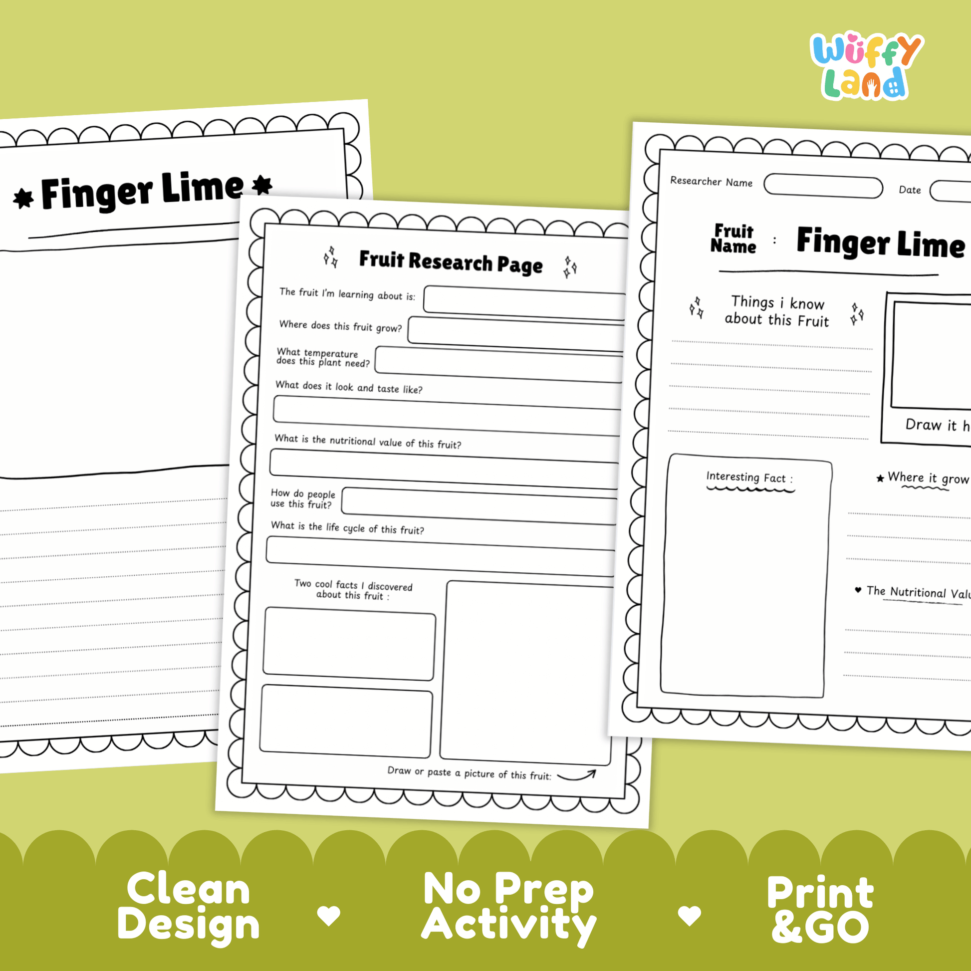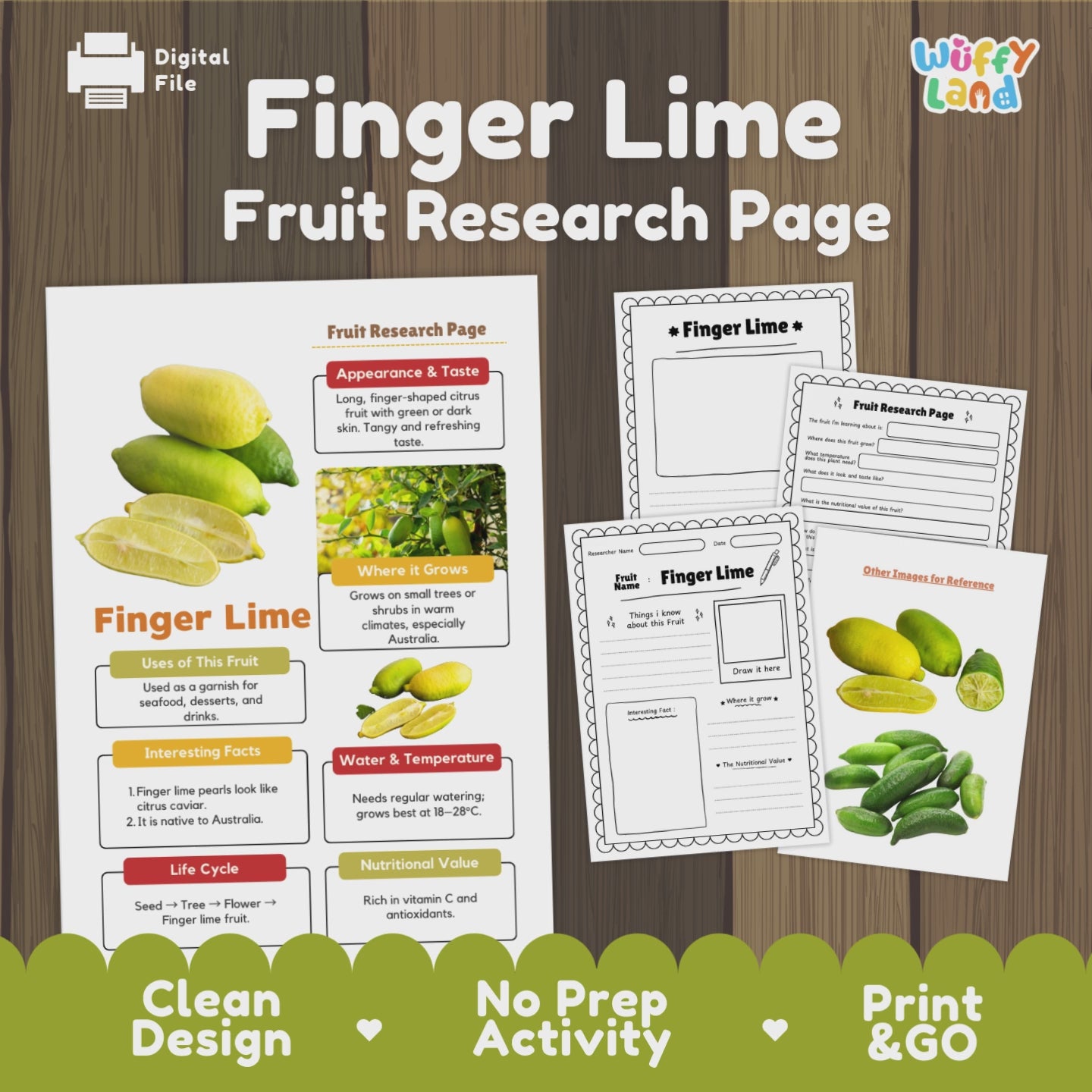 Teach your students all about the fascinating Finger Lime, famous for its "citrus caviar" pearls, with this engaging Fruit Research Page! This "Print and Go" resource is designed to help students practice reading non-fiction text, gathering facts, and writing reports in a fun and accessible way. It is perfect for science centers, healthy eating units, Australian plant studies, or discovering unique fruits.