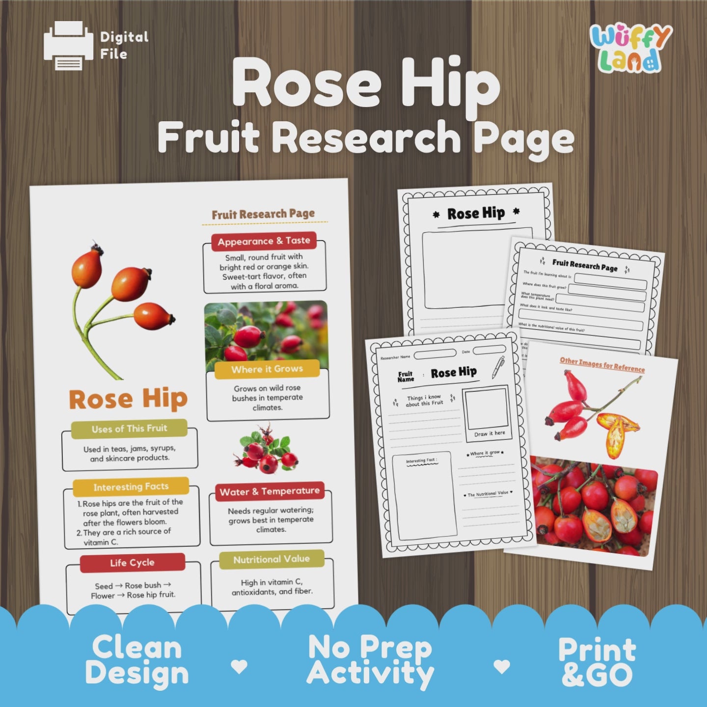 Discover the fruit of the rose with this Rose Hip Research Activity! Includes a colorful fact poster, student research worksheets, and real photo references. Learn how roses turn into vitamin-rich fruits used in tea and skincare.