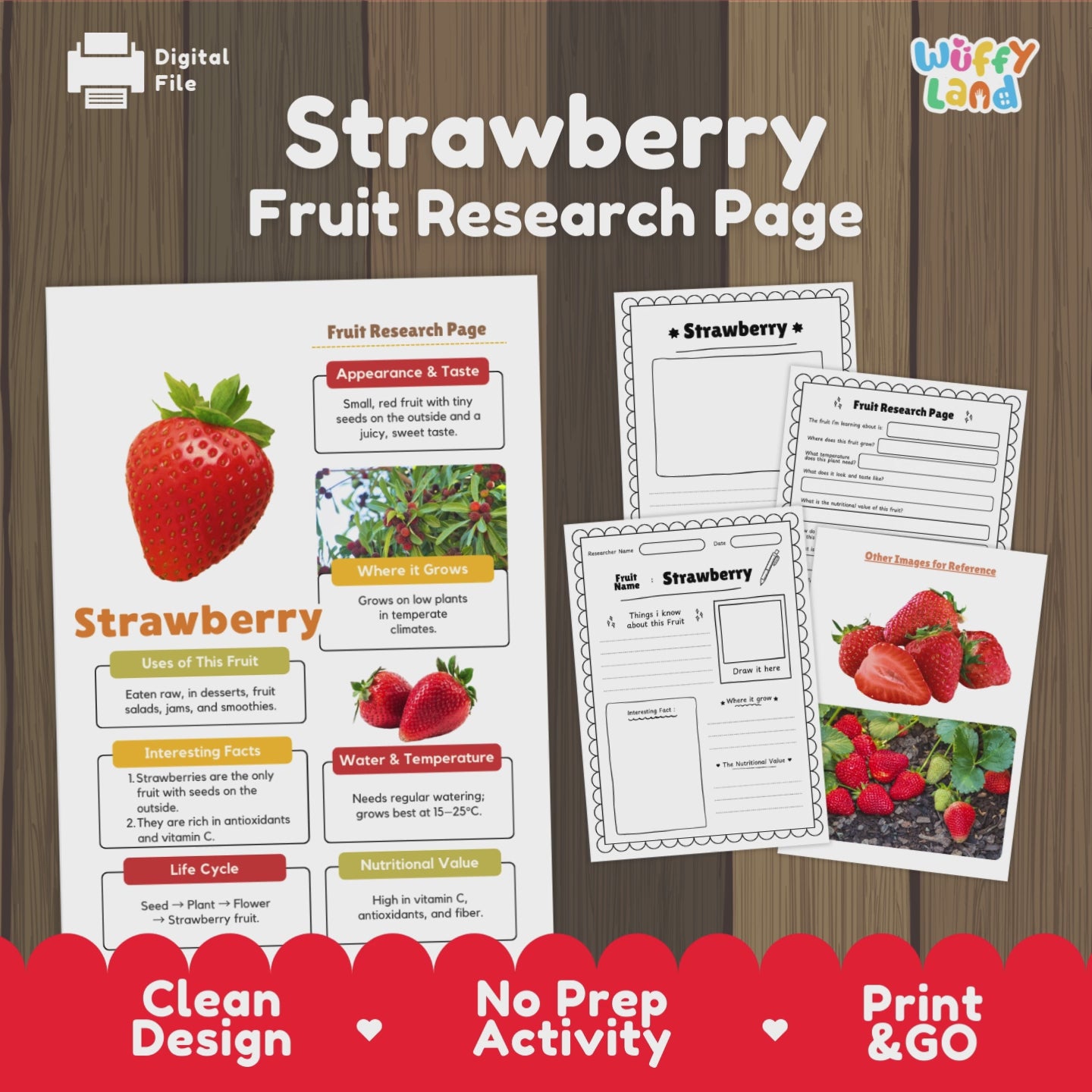 Explore the world of Strawberries with this engaging research activity! Includes a colorful fact poster, student research worksheets, and real photo references. Learn why it's the only fruit with seeds on the outside!